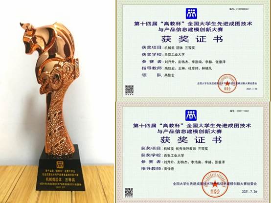 ① 在第十四届“高教杯”全国大学生先进成图技术与产品信息建模创新大赛中,壹号娱乐首次获得“机械类团体”全国三等奖1项,获得“机械类个人全能”全国三等奖3项。