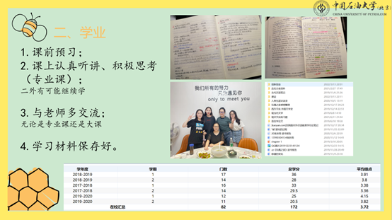 朱秋雨同学四学年综合排名专业第一,获得多项奖学金,曾任校学生会权益部部长,现为中国石油大学(北京)硕士研究生。她认为拥有积极进取的心态和扎实的专业课基础是考研成功的关键,同时鼓励同学们应当参加多一些学生活动,增加实践经历。