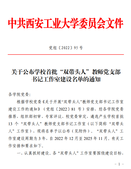 “双带头人”工作室建设是高校教师党支部书记“双带头人”培育工程的重要内容,主要是以学校教师党支部为依托,积极探索形成符合学校实际、兼顾学科专业特点、可示范可推广的“双带头人”教师党支部书记培育工作体制机制,着力把教师党支部书记队伍建设成为新时代高校党建和业务双融合、双促进的中坚骨干力量,着力把教师党支部建设成为促进新时代高校事业发展的坚强战斗堡垒。为落实立德树人根本任务、实现教育内涵式发展、培养德智体美劳全面发展的社会主义建设者和接班人提供坚强组织保证。