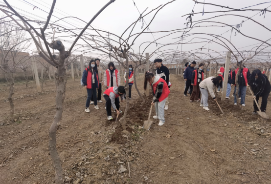 抵达猕猴桃基地后果民代表为大家细致耐心讲解了果苗培育与种植管理、猕猴桃成长属性相关知识,并亲自示范如何起垄做畦。实践环节中,西安工大志愿者每队负责一垄,手持农具轮流劳作。志愿者们通过反复试验,不断修正操作动作最终圆满完成了耕作任务,受到了当地果农的夸赞。