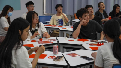 学生通过扫码的方式踊跃报名参加了此次活动。活动中杨静老师针对零基础的同学们首先讲解了剪纸的文化与基本技法,接着从简到繁的对不同图形的剪纸方法进行了现场实践教学及指导。
