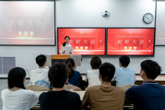 首先,牟雪艺总结了本学年心理育人工作,对积极参与活动和心理育人工作的各位同学表示感谢。毛琳宣读表彰决定,并为获奖同学颁奖。随后,师生共同观看了优秀心理作品展播。
