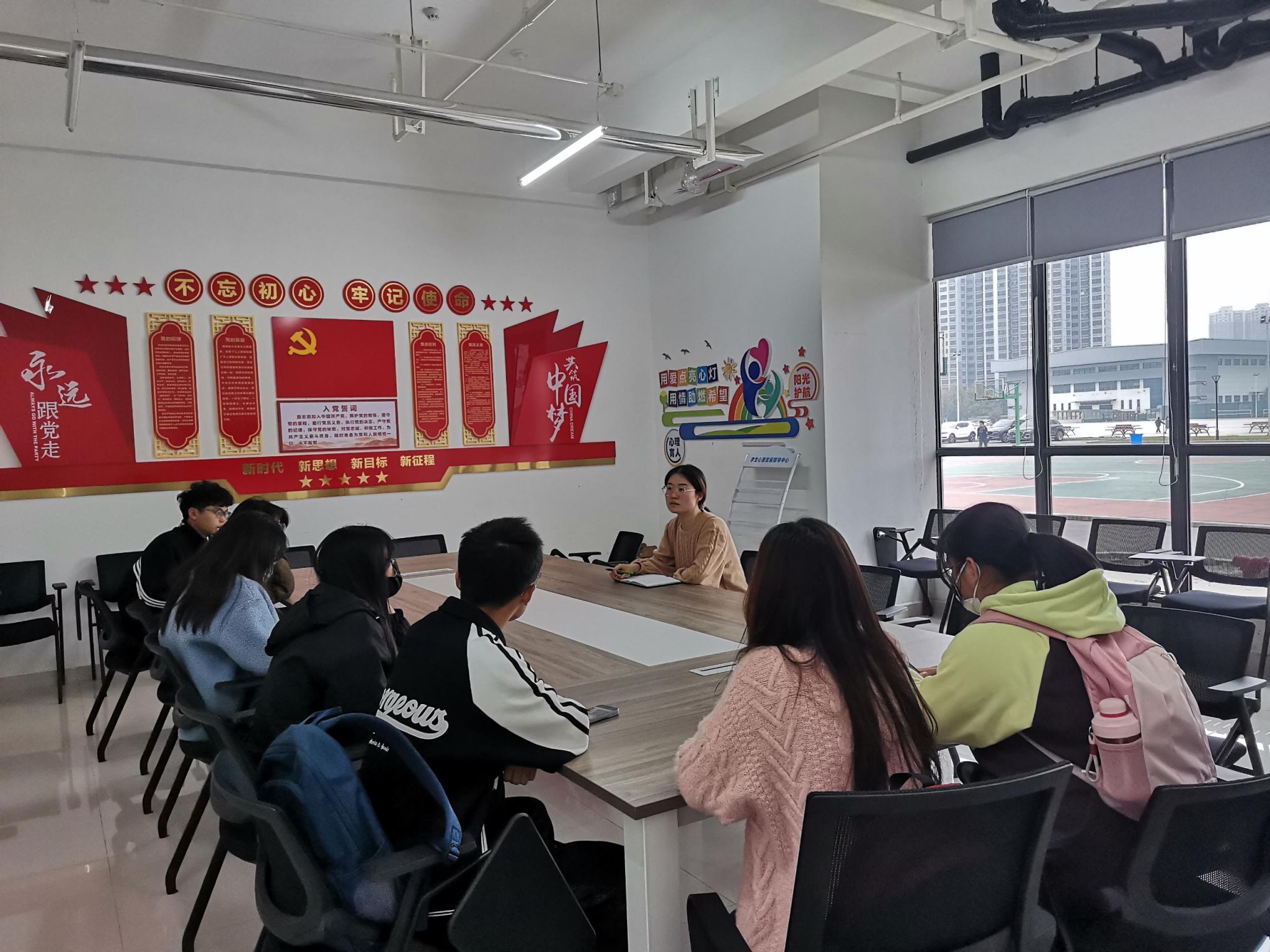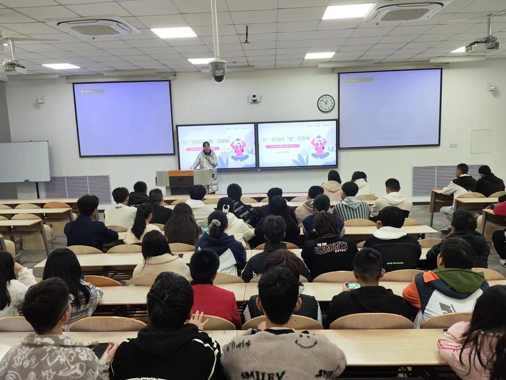 全体辅导员以班会、主题沙龙、体验式游戏、团体心理辅导等形式,结合工作案例为大学生科普心理健康知识与常见心理问题,讲解朋辈谈心沟通技巧及危机事件处理流程,重点对同学们出现的心理问题做到早发现、早干预、早上报,人人履职尽责,互助友爱。