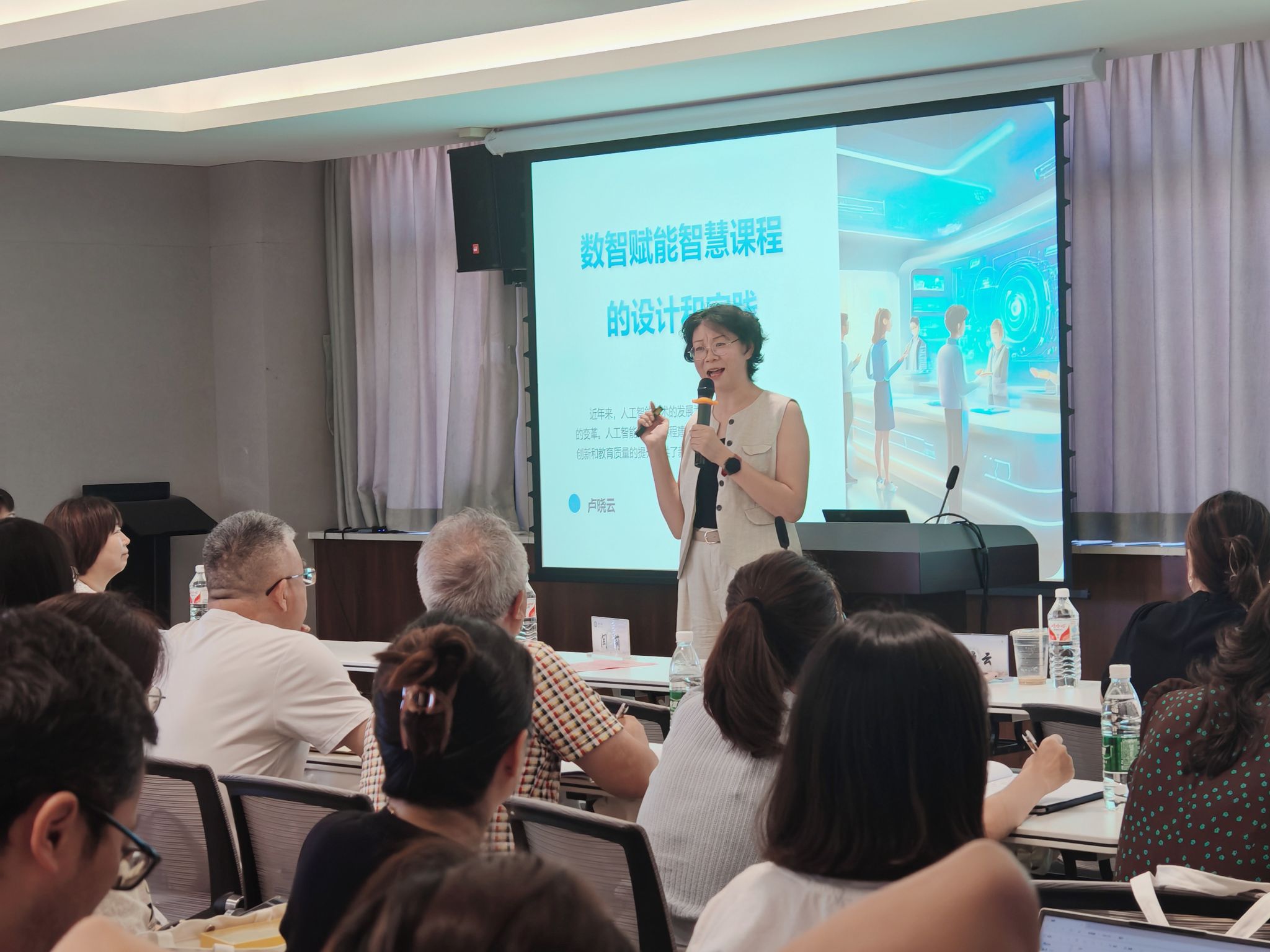 西安交通大学生命科学与技术学院教授卢晓云作了题为《数智赋能智慧课堂的设计和实践》的报告。报告从AI+时代人才培养和学生发展的需求、以学生发展为中心的智慧课程教学设计、数智技术赋能学生能力的提升和做AI不能取代的教师四个方面展开,对于AI+时代学生有效学习条件、不同场景以学生为中心的智慧课程教学设计、如何通过数智技术变革赋能学生学习能力、教师对未来课程数智转型的数据素养等内容详细说明,帮助教师们更深入的学习领会数智赋能智慧课堂的精髓和方法。