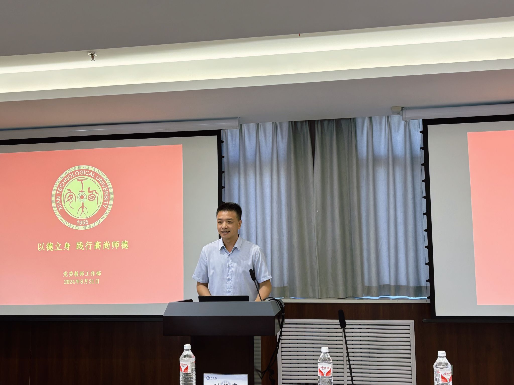 校党委教师工作部副部长郭军作了题为《以德立身,践行高尚师德》的报告。从师德师风制度规范、师德师范警示案例和涵养践行高尚师德三个方面向教师们阐述。从国家层面到学校层面,制度政策到实际案例以及西迁精神、教育家精神、西安工大精神各个维度进一步强调教师们要做“四有好老师”,做“四个引路人”,坚持“四个相统一”。