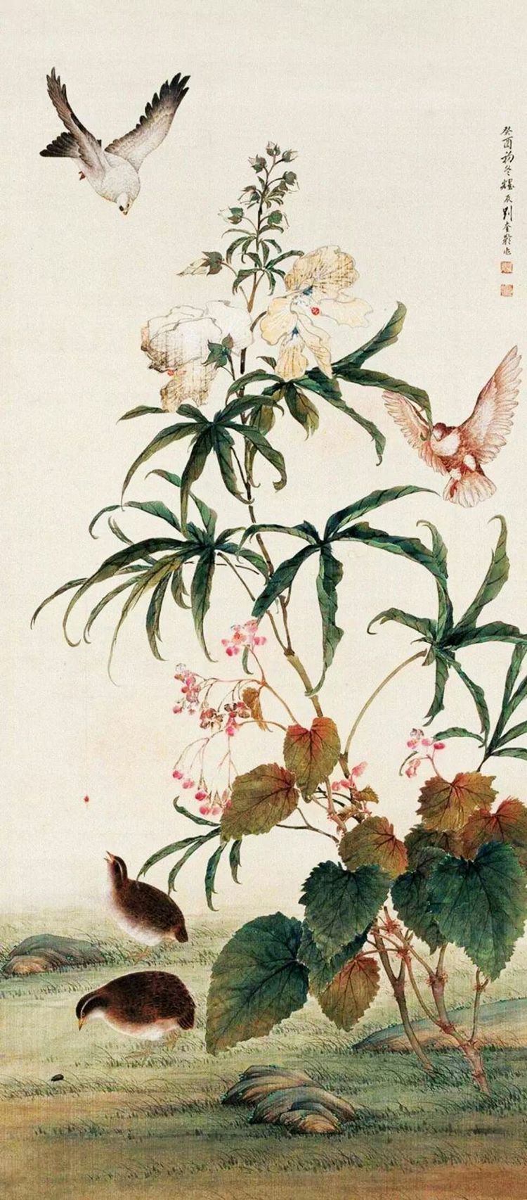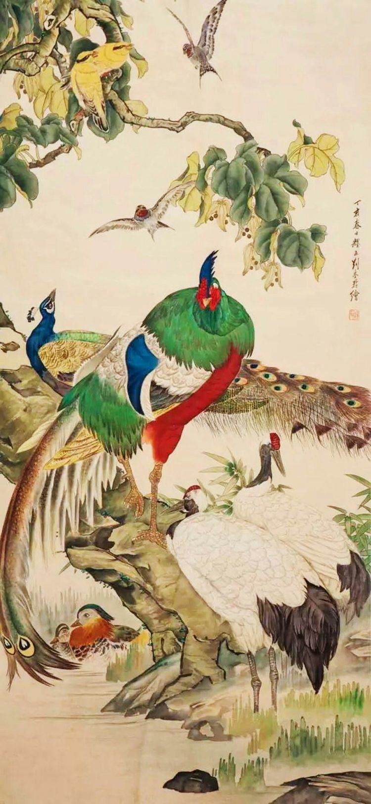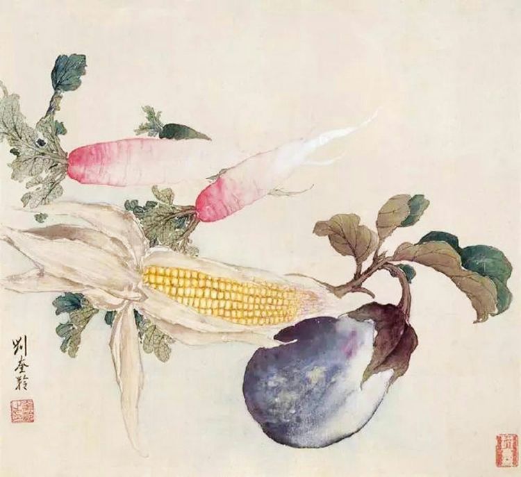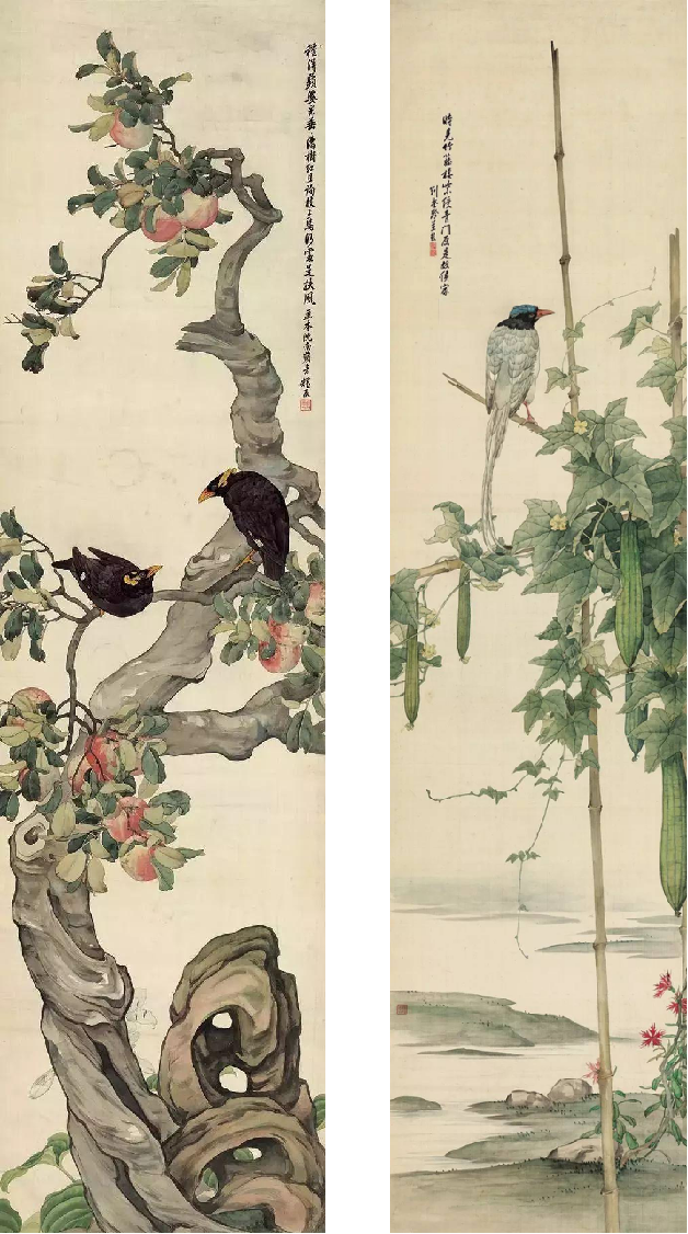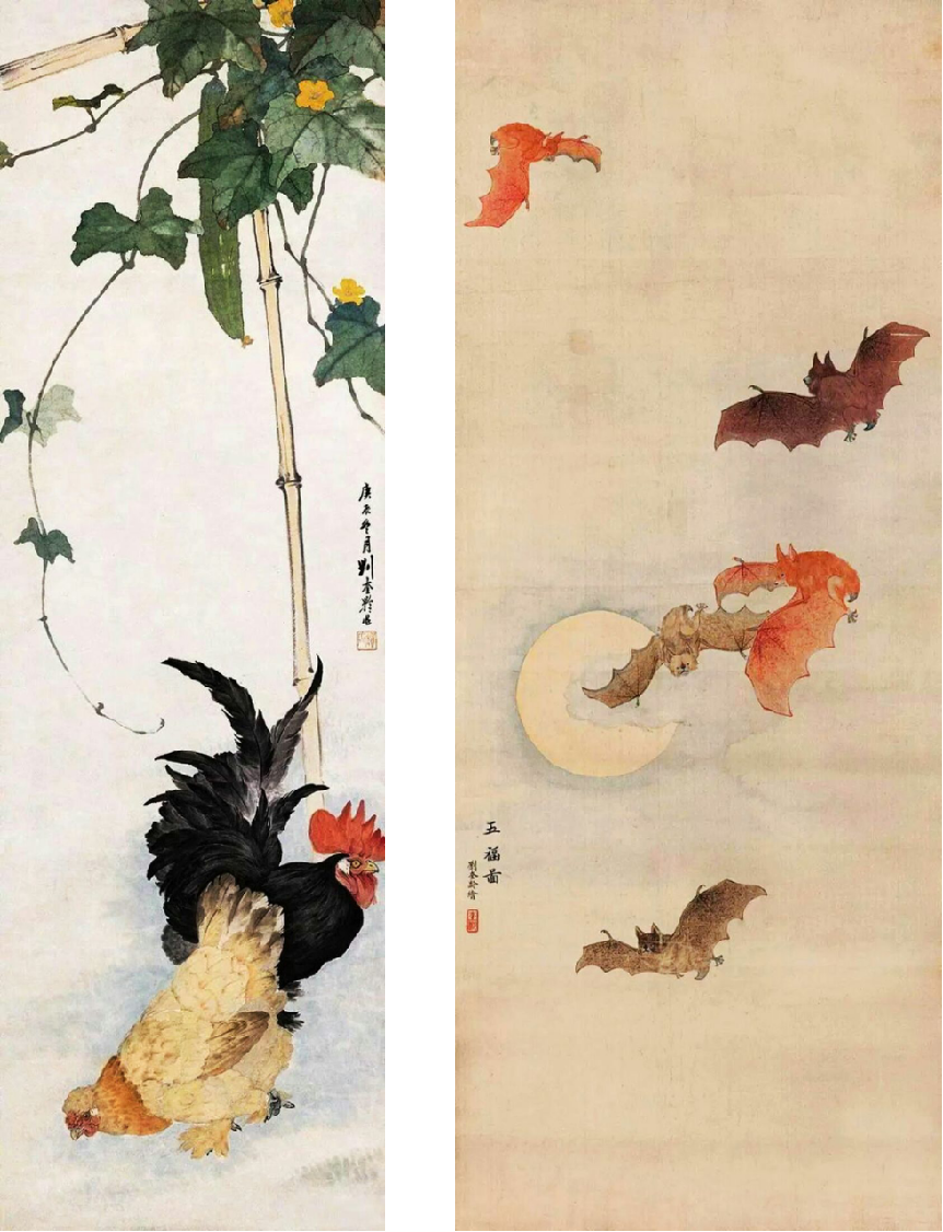 刘奎龄的作品题材广泛,无论是翎毛花卉、水族鳞介、草虫蔬果,还是走兽、人物、山水,他都信手拈来,尤以花鸟、草虫、走兽最为见长。他的画风华滋清润,厚劲灵动,意境深邃。