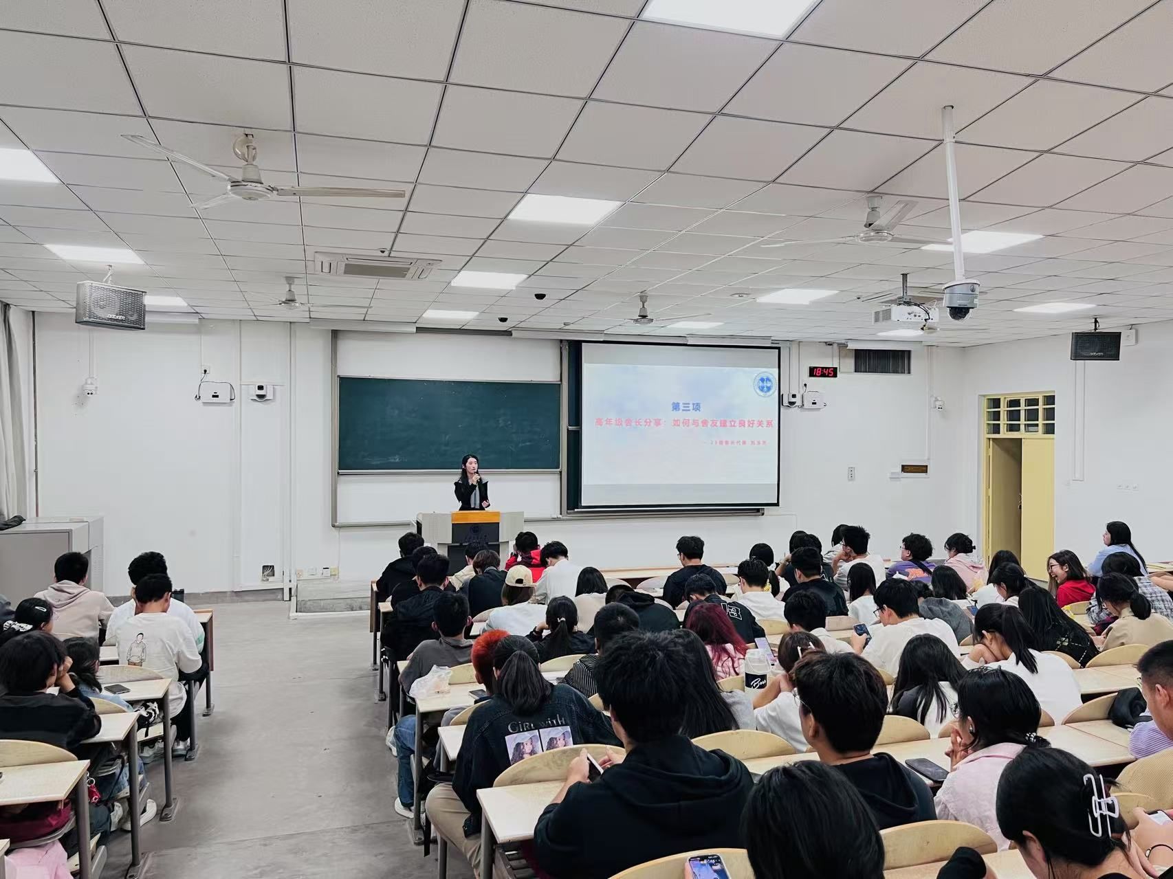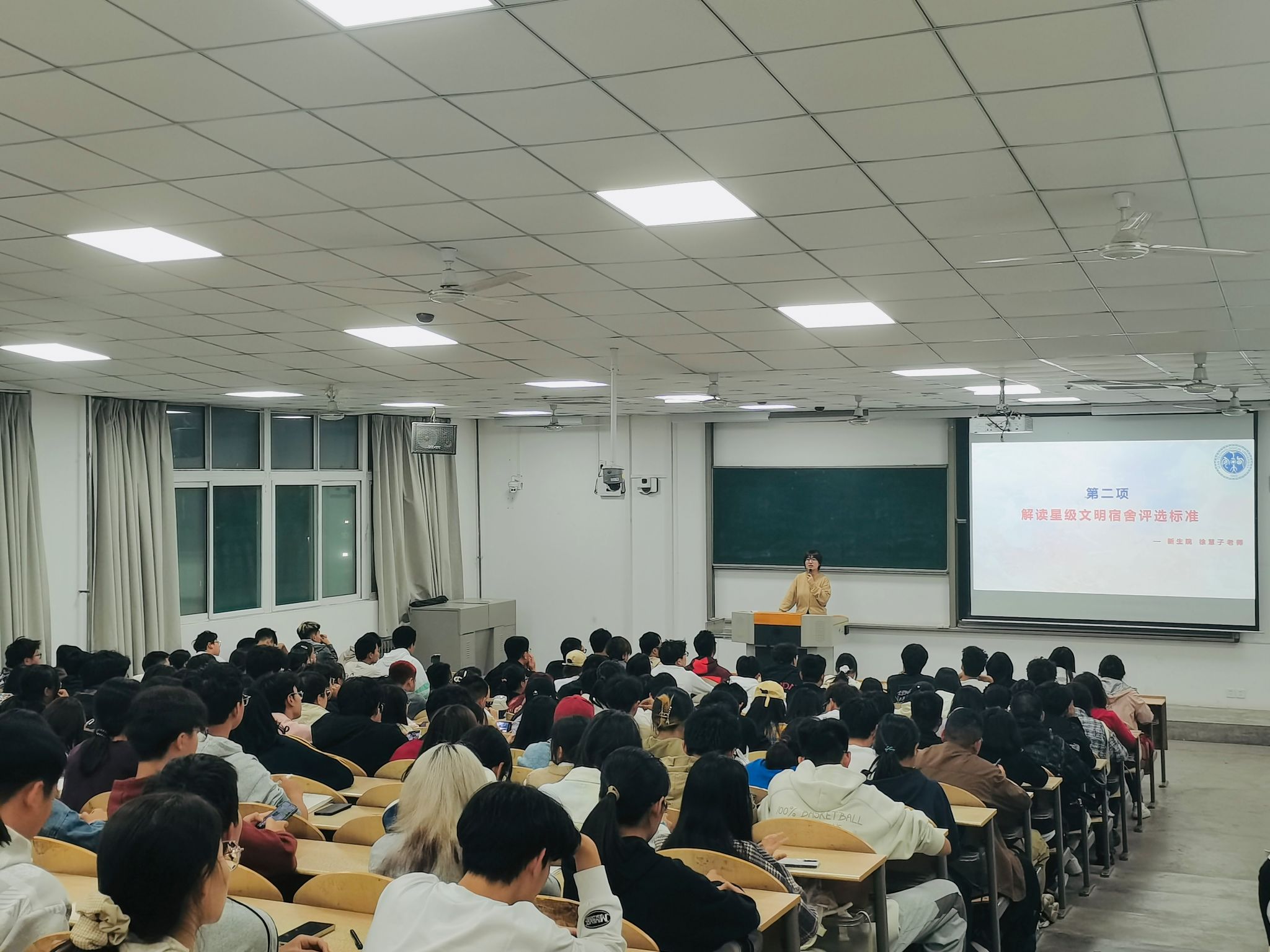 首先,张向阳做题为“和谐宿舍 精彩生活”的专题辅导。从心理育人的角度出发,就如何通过有效的沟通和互助,构建和谐的宿舍氛围与大家分享案例,帮助同学们更好地理解和应对学习生活中可能出现的各种问题。徐慧子对2024-2025学年星级文明宿舍的建设和评选办法进行解读,重点强调了评选流程、评选标准以及奖励措施,鼓励全体宿舍认真准备,积极参与,严格标准,争先创优。