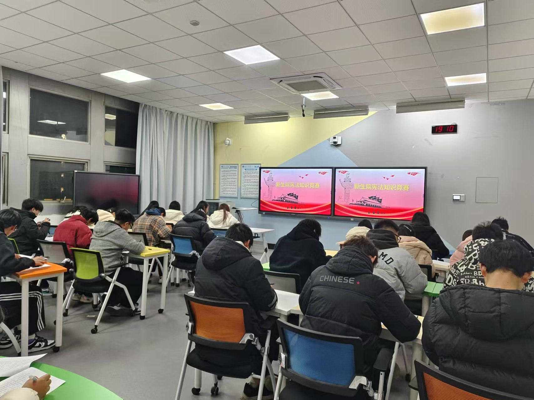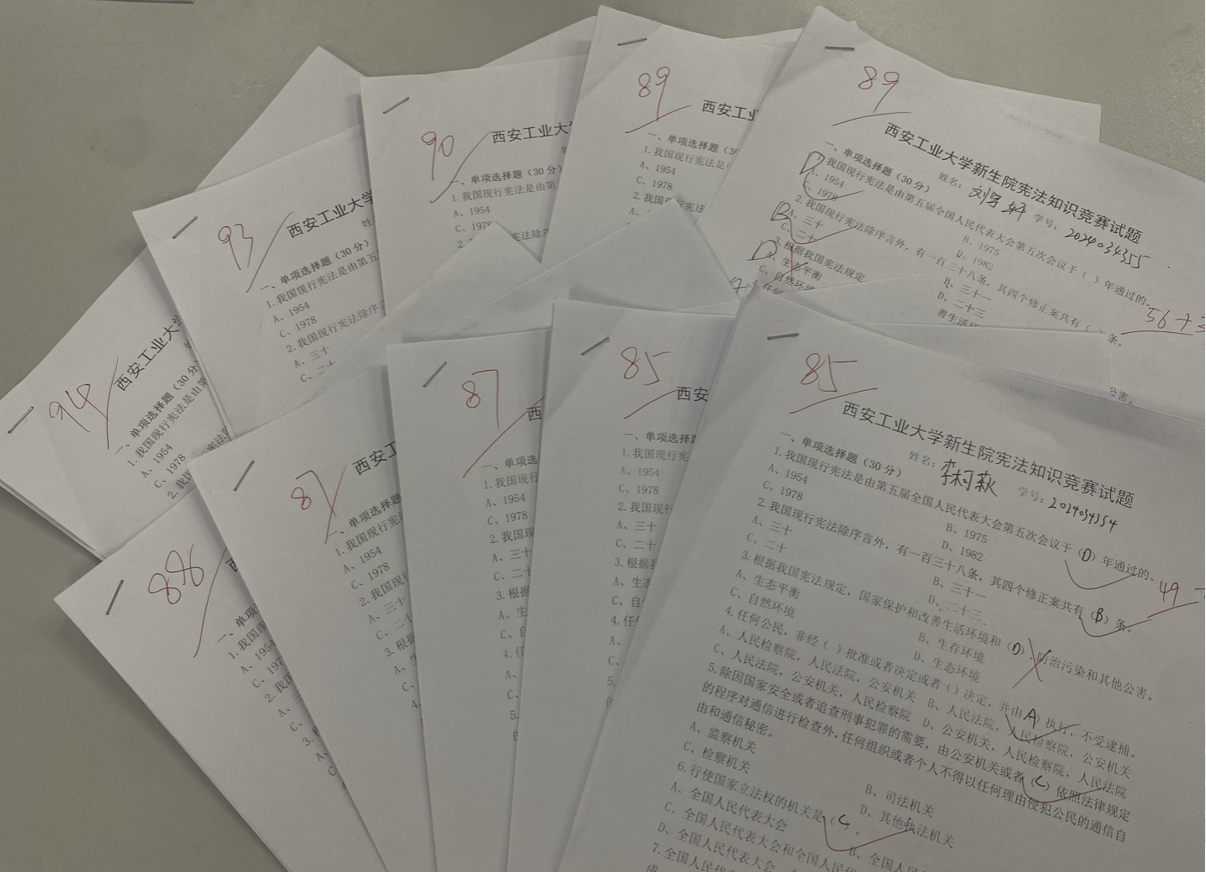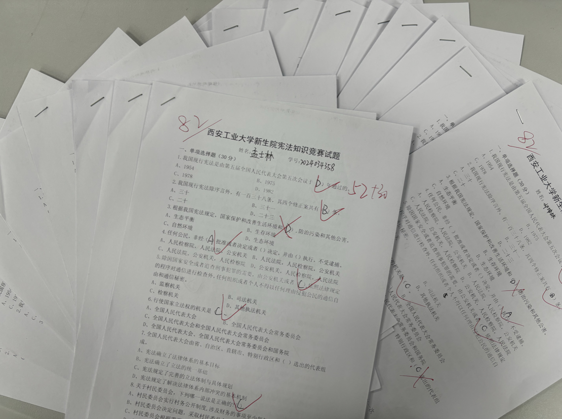 活动现场同学们展现出浓厚的学习兴趣,竞赛内容涵盖了宪法的基本理念、基本原则以及公民的基本权利和义务等方面,同学们认真思考,踊跃作答。