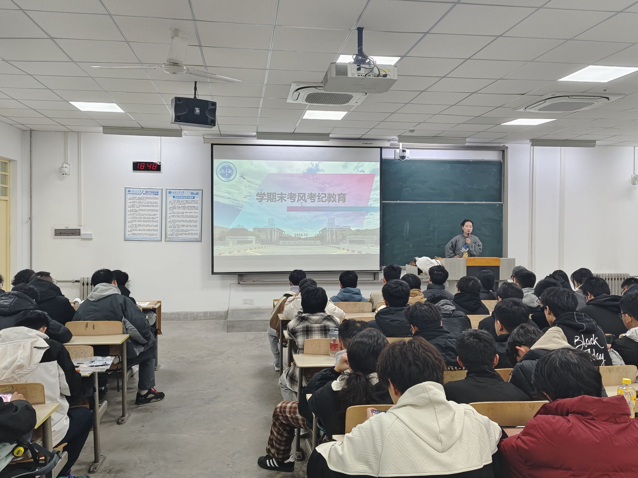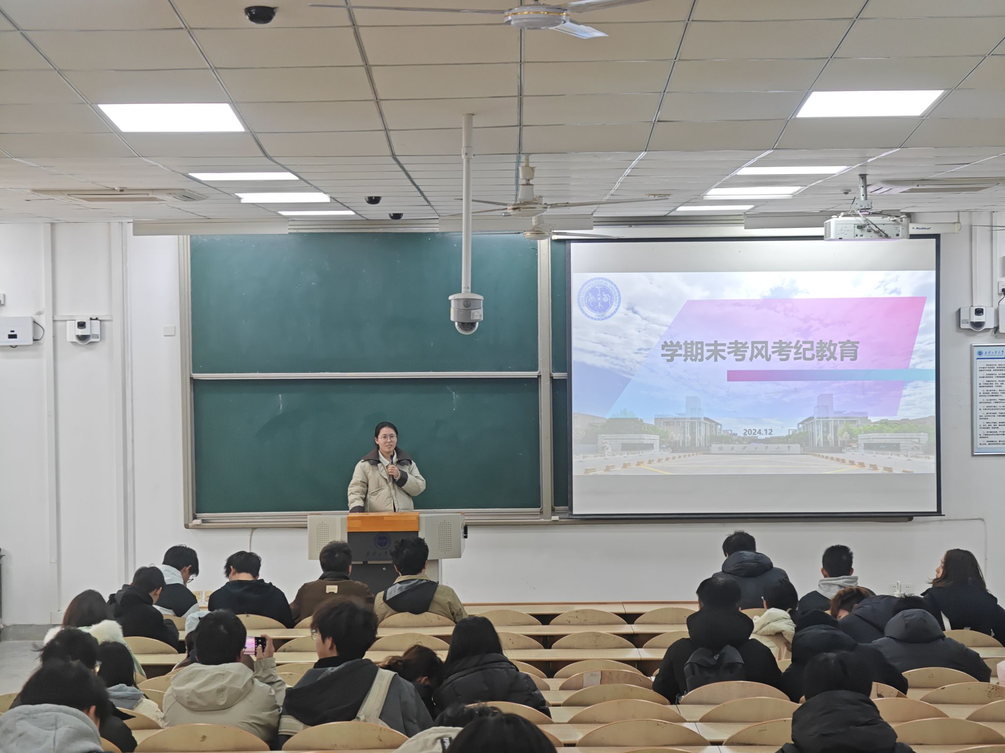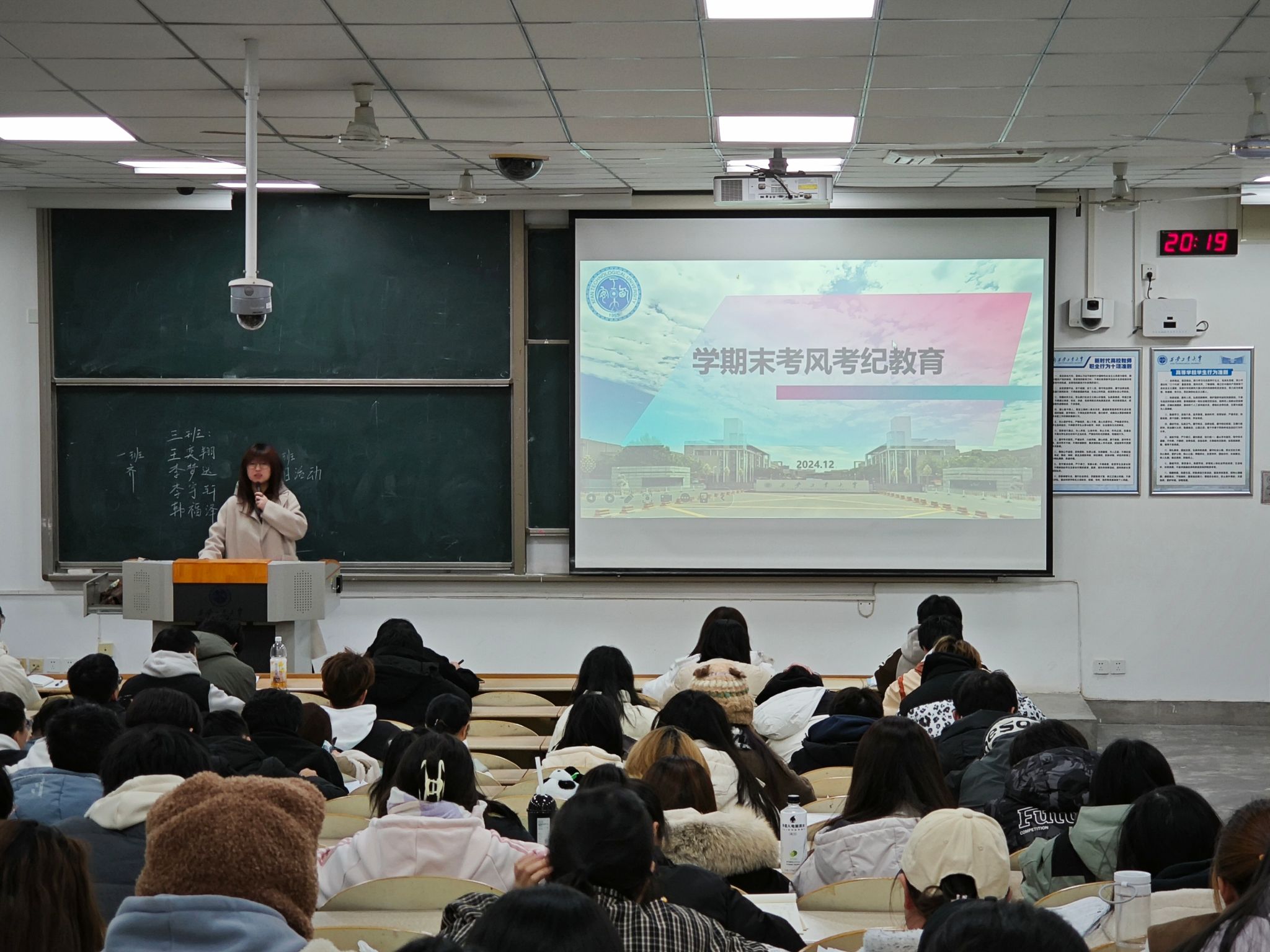 以“严肃考风考纪,树立优良学风”为主题召开年级大会,落实推进考风考纪教育工作。全体辅导员、2024级新生参加。