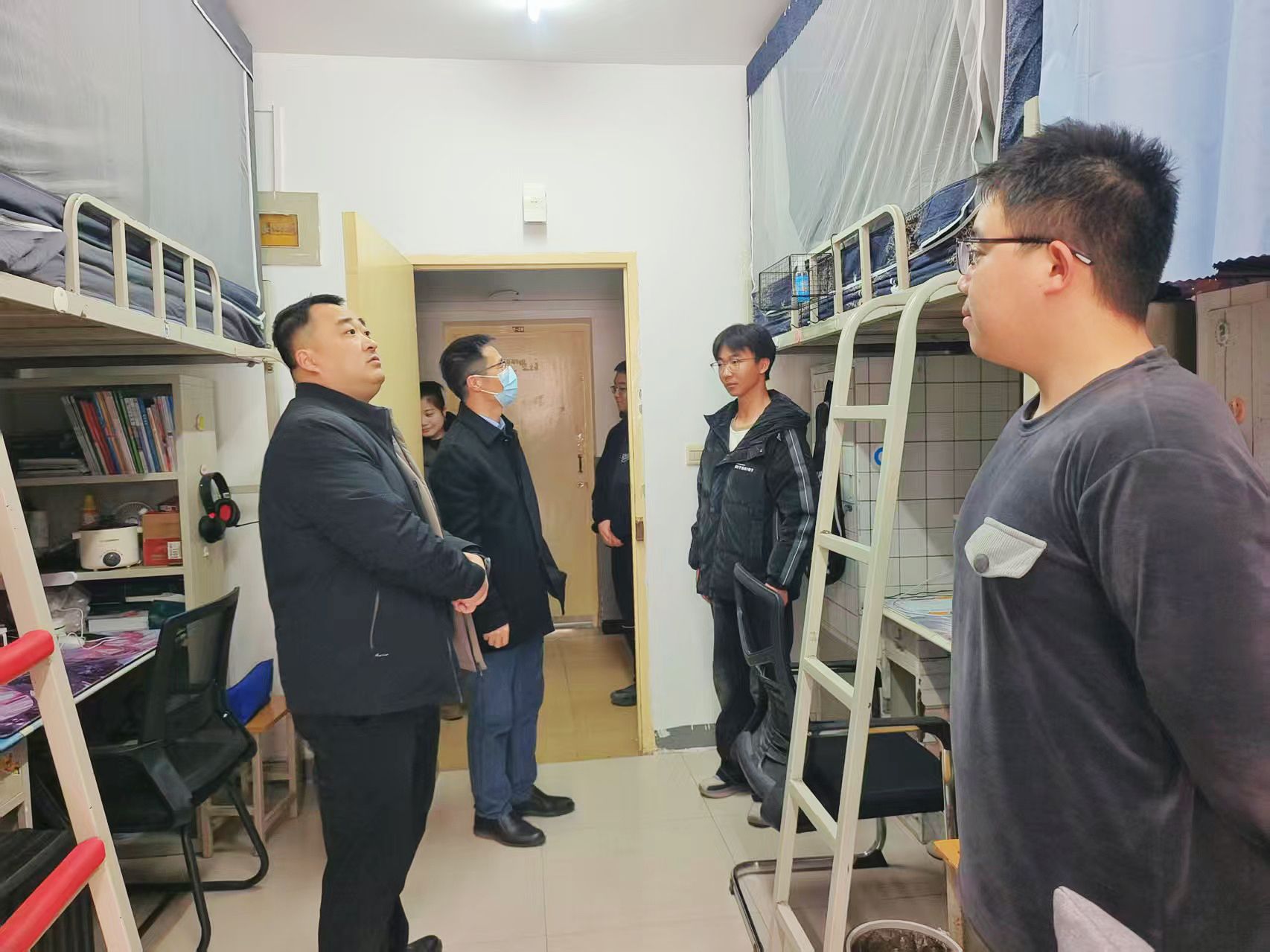 党委书记姬洪波、院党委副书记翟超一行走访学生宿舍,了解新学期学生返校情况。