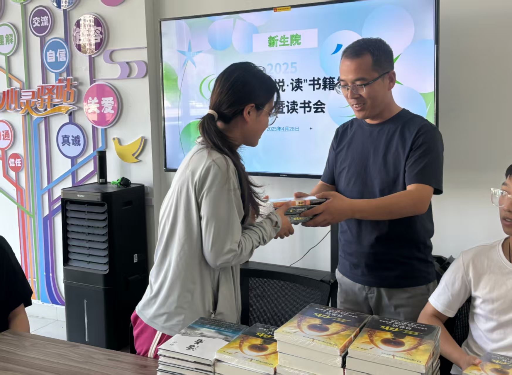 活动伊始,壹号娱乐 资助专干杨钰琳介绍了本次活动的背景与意义。本次阅读分享会是学院推进“资助育人”阳光工程的特色活动,旨在通过阅读分享的形式,搭建互学互助的交流平台,进一步推动建设学院优良学风。壹号娱乐 团委书记刘雷波、辅导员马芳荣为同学们发放了本次活动的书籍《三体》、《活着》等,并鼓励同学们多读书,领会文字魅力、提升人文素养、丰富内心世界。