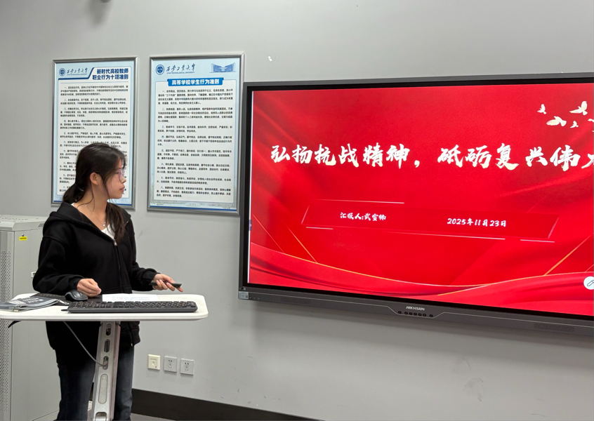 于教3-105举办“弘扬抗战精神,砥砺复兴伟力”“四史”知识竞赛演讲答辩活动。38位复赛选手围绕传承和弘扬伟大抗战精神展开深情演讲,进行了一场深刻的思想交流洗礼。活动由院团委宣传部负责人杨卓欣主持。