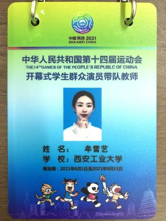 欣逢全运盛会在西安举办,牟雪艺老师积极主动报名,光荣成为了十四运开幕式演员带队教师队伍的一员。从谷雨到处暑,从选拔到彩排,从风雨操场到奥体中心,牟老师与学生苦乐顺道,打成一片。作为开幕式群演第一队的队长,无论是冒着大雨为学生分发雨披,还是忍着饥饿将自己的晚餐送给辛苦训练的学生,亦或是耐心细致地为学生解决各种思想和生活上的困难,她主动作为、从不抱怨,坚持用真心、办实事、解难题,圆满完成了带队教师的各项任务,为十四运开幕式迎宾鼓阵的惊艳亮相奉献了自己的力量。