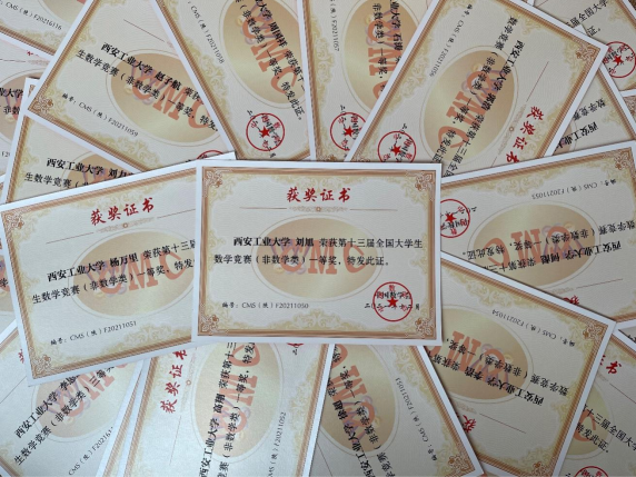 数学系教师指导学生参加全国大学生数学竞赛获奖证书(部分)
