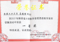 在教学大纲指导下,深入挖掘课程思政元素及案例,编撰《高等数学》《线性代数》和《概率论与数理统计》三门数学课课程思政案例集。在课堂上,数学系教师为学生建立严密完备逻辑体系、亲笔推演公式定理、细诉数学文化数学发展,弘扬兵工精神、阐述西工故事,厚植爱国主义情怀,将立德树人落到实处,助力学生成长成才。把思想政治教育贯穿于大学数学课程教学全过程,实现显性和隐性教育的有机融合。2020年数学系获批课程思政专项教改项目3项,并且3门课程被评为校级课程思政示范课。2021年,在陕西省大学数学课程思政教学案例评选中获特等奖、一等奖、二等奖共5项;在西安工业大学课程思政优秀案例评选中获奖10项。