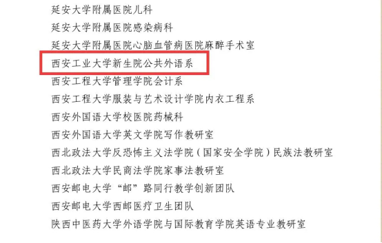 公共外语系荣获2022年“陕西省教科文卫体系统五一巾帼标兵岗”。