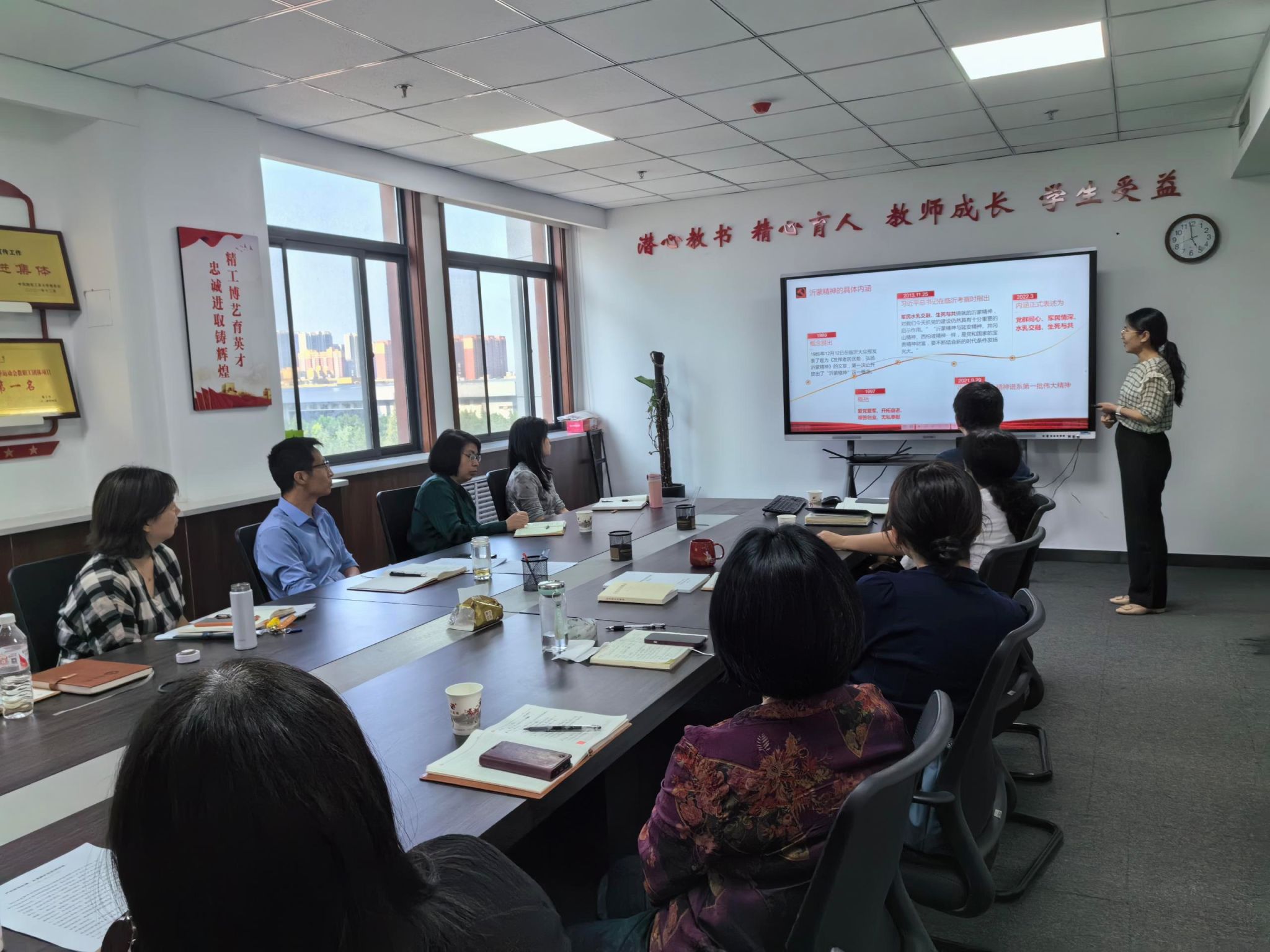 会议集中学习了《中国共产党纪律处分条例》(部分)《严明政治纪律自觉维护党的团结统一》《教育系统违纪违法典型案例警示录学习》(节选)《组织动员亿万职工积极投身强国建设、民族复兴的伟大事业》,并要求自学《习近平总书记在新时代推动西部大开发座谈会上的重要讲话》。交流研讨环节,数学党支部伏文清同志围绕沂蒙精神的形成和发展、时代价值为大家进行了详细介绍和阐释。姬洪波强调,要扎实推进党纪学习教育各项工作,坚持把牢学习《中国共产党纪律处分条例》这条主线,采用有效形式,选取典型案例提升学习成效和警示效果,让党纪学习教育入脑入心、见行见效,不断增强自我净化、自我完善、自我革新、自我提高的能力。要持续涵养艰苦奋斗、无私奉献的优良品格,用开拓创新、锐意进取的拼搏精神推进本科教育教学审核评估、人才引进和培养等工作,确保年度目标顺利完成。