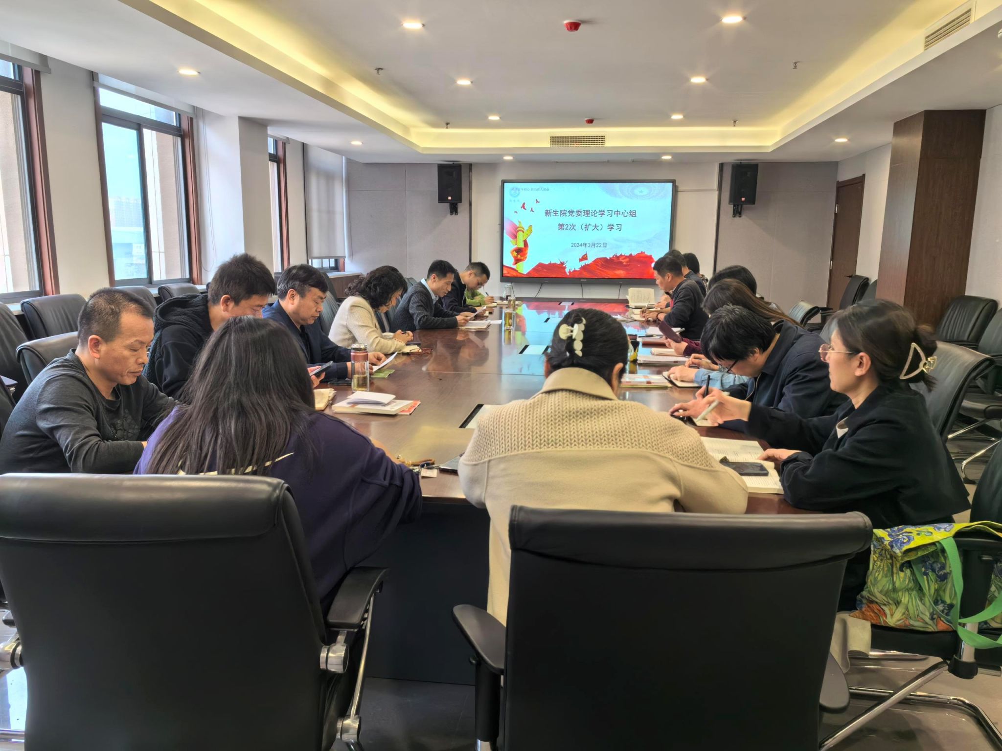 党委理论学习中心组(扩大)学习在双创楼524会议室进行,党委理论学习中心组成员、各党支部书记、系(中心)主任参加本次学习,院党委书记姬洪波主持。