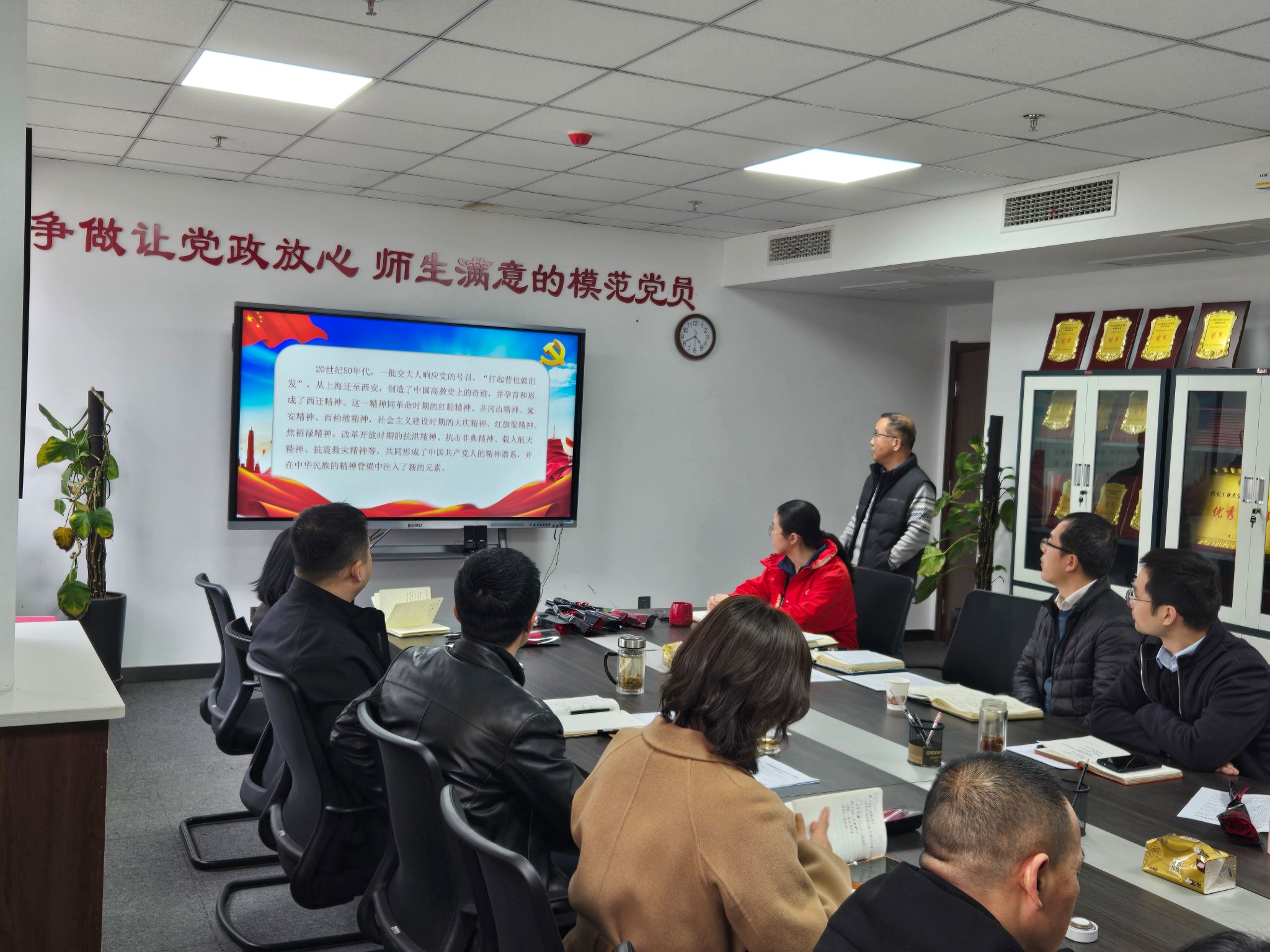 会议集中学习了《这一年的步伐,我们走得很见神采——习近平主席二〇二四年新年贺词启示录》《落实立德树人根本任务(强国建设砥砺前行)——代表委员谈加快建设教育强国》《2024年陕西省教育工作会议召开》和《中国共产党章程(第六章)》,要求个人自学1月4日中共中央政治局常务委员会会议精神。会议围绕“对党员的日常监督和违纪处理”、“大学学廉——正心”进行专题视频学习。在交流研讨环节,物理党支部肖洪波同志围绕西迁精神的的历史背景,精神内核和如何传承弘扬西迁精神进行了交流。姬洪波指出,壹号娱乐