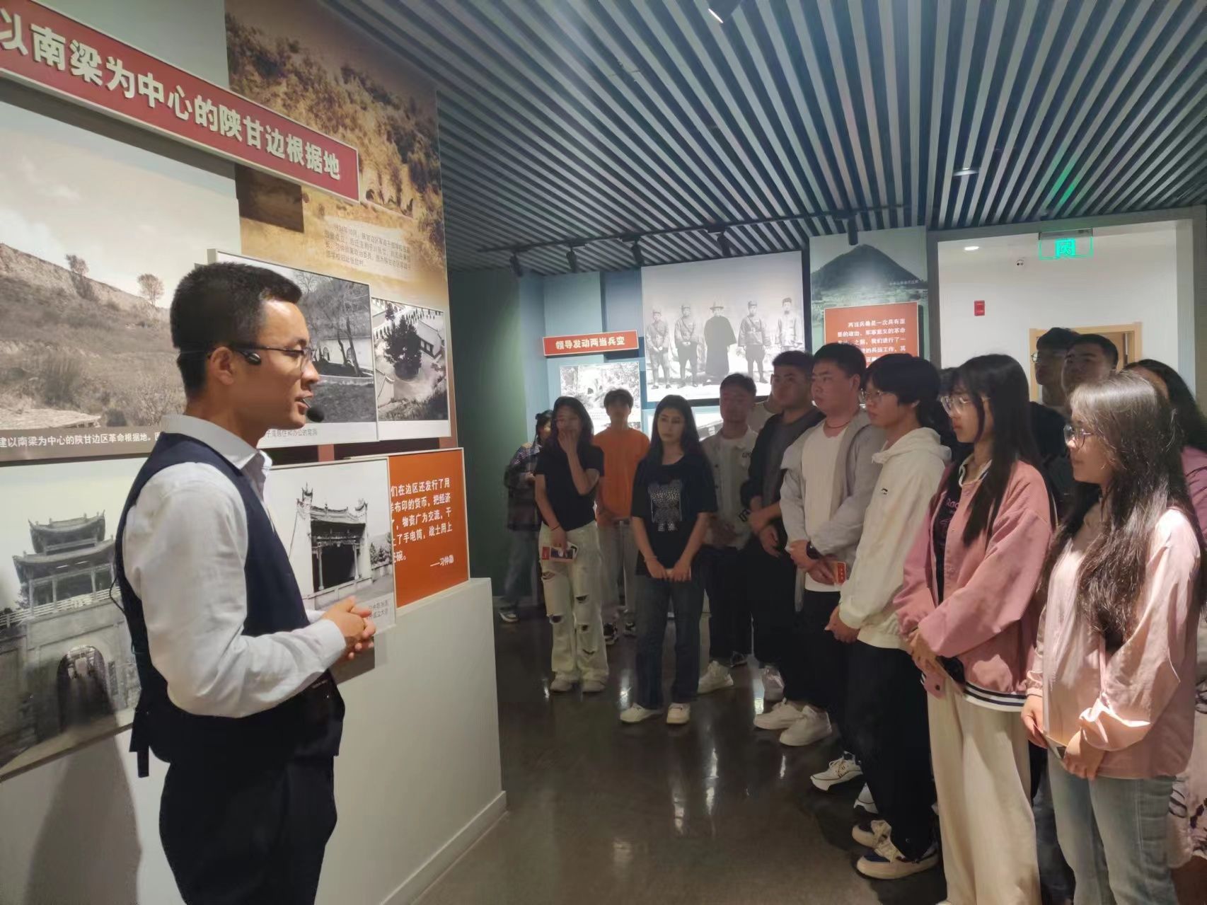 全体师生共同参观了八路军120师抗日誓师陈列馆,馆内陈列着八路军120师这支英雄部队的光辉业绩。同学们不时驻足、久久凝视,深切缅怀老一辈无产阶级革命者浴血奋战的英雄岁月。
