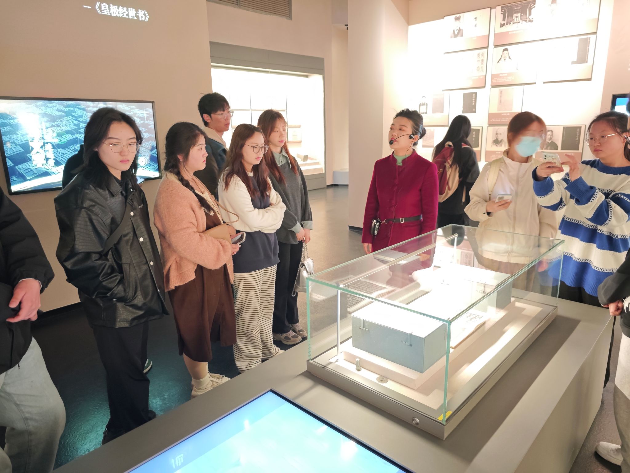 在讲解员同志的带领下,师生依次参观了《楮墨遗珍万里同风——丝绸之路版本展》和《赓续文脉 踔厉前行——中华文化经典版本展(西部篇)》两个展厅。展厅内各种文物文献典籍、实物、珍贵图片、雕塑、绘画以及手稿等版本资源,生动展现了千年丝路文明、中华民族文化根脉、延安精神以及以西部为主的中华优秀传统文化脉络,使师生真切感受到中华文化的深厚底蕴、家国情怀及民族精神,感受到中华文明记录、保存、赓续、传播与更新的历程。