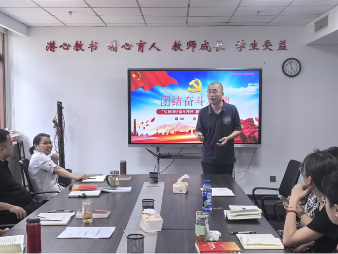 交流研讨环节,物理党支部杨郁同志分享了对于团结奋斗精神的认识和感悟。新时代中华民族伟大复兴面临着许多风险和挑战,而中华民族的团结奋斗精神,已经熔铸于当代中国国家制度和治理体系当中,彰显了显著的制度优势,发挥出强大的治理效能。例如在抗击新冠肺炎疫情的斗争中,各级组织和人民都能坚决服从党中央的统一指挥、统一协调,以高度的大局意识和全局观念,形成了全国一盘棋的优势,这些制度优势及其发挥的治理效能是其他制度无法比拟的。