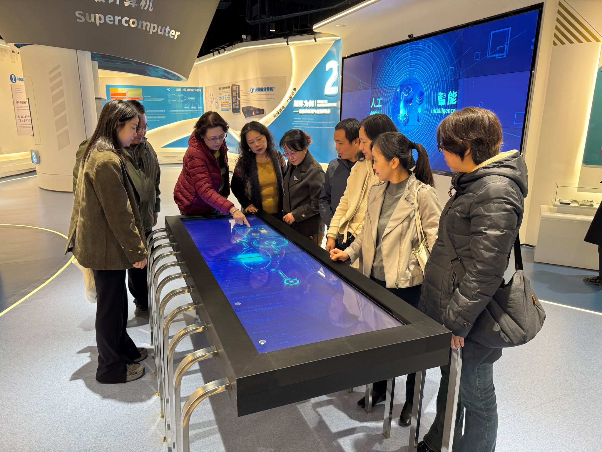 通过参观大家对超算原理、发展历程及广泛应用领域有了直观认识,切实感受到超级计算机在气象预测、航空航天模拟、生物医药研发等“算天、算地、算人、算物” 场景中的关键作用,也被先进计算装置强大的性能与运算能力所震撼,深刻领略到 “中国速度” 与 “科技兴国” 的磅礴力量。