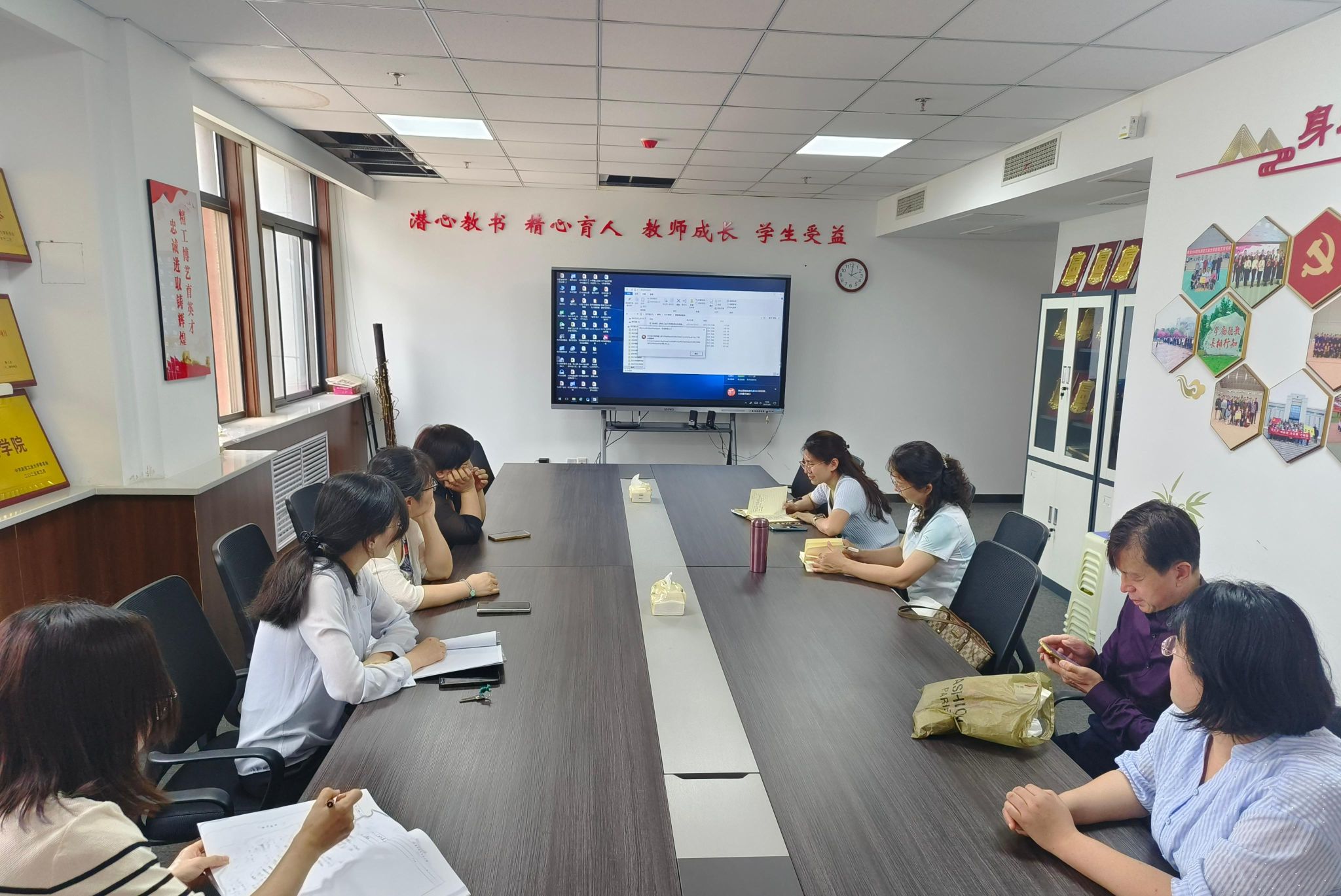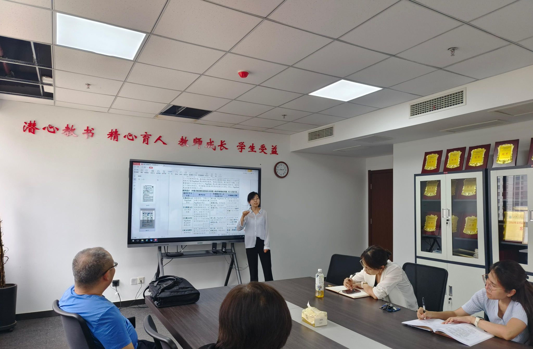 伏文清同志详细梳理了支部党员教师在课程思政建设中取得的显著成果。党员教师积极发挥先锋模范作用,成立了《高等数学》《线性代数》《概率论与数理统计》课程思政教师团队,深入挖掘和凝练课程思政元素,精心编写了融入课程思政元素的新教学大纲、教案、课件以及教学指南。三门课程均被评为省级和校级课程思政示范课,共有32个课程思政案例荣获省级或校级奖项。
