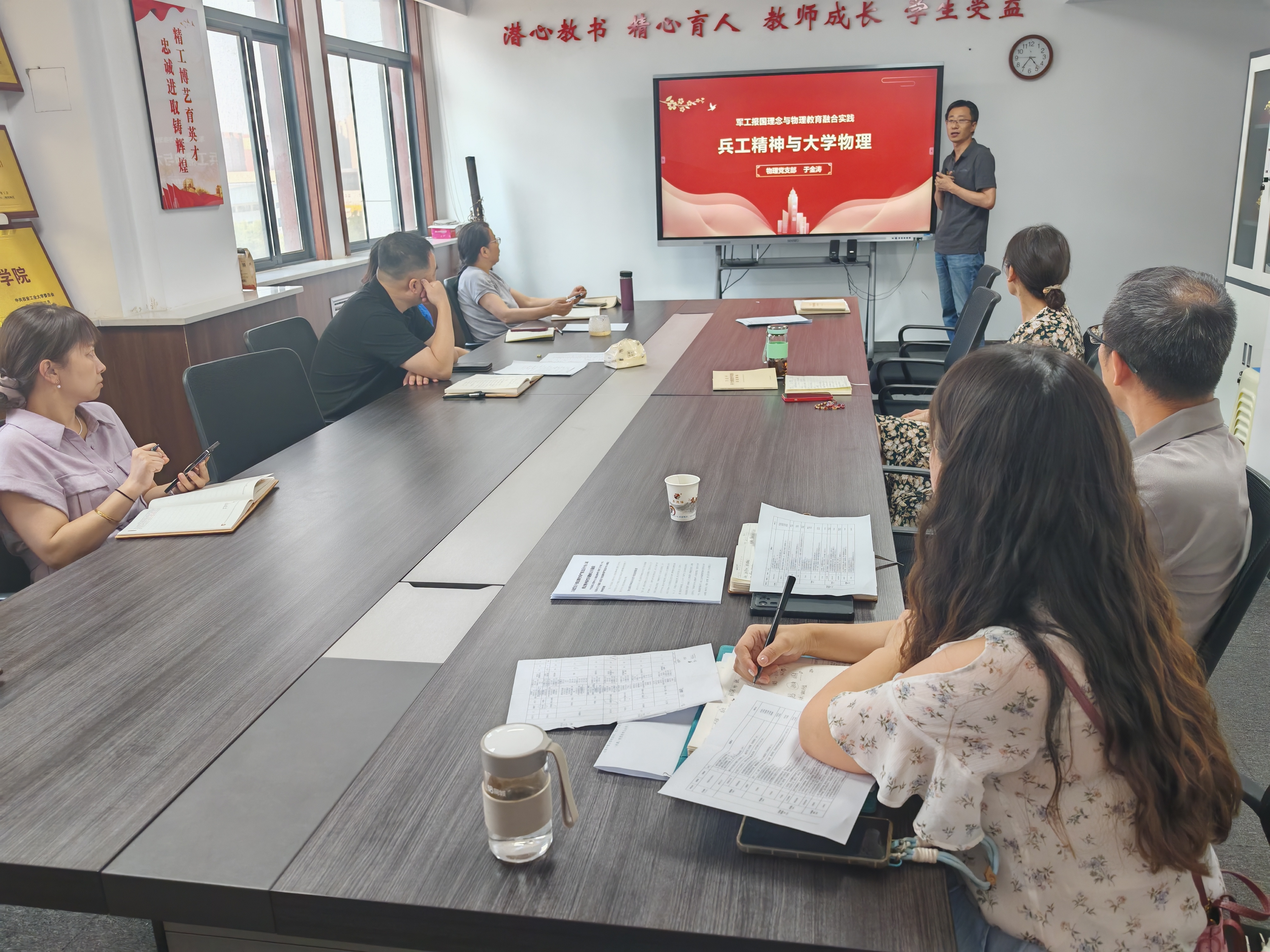 会议集体观看了纪法小课堂:对违规兼职说“不”,物理党支部于金涛同志以“兵工精神与大学物理”为题交流分享了学习心得和感悟。
