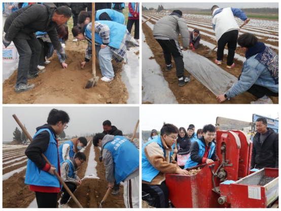 随后同学们跟随农户从犁地、放种到铺膜进行分步学习演示,分组帮助农户进行田间种植。大家分工明确、相互协作,在农户的帮助指导下,历时1个多小时完成了一亩地的土豆播种。全过程大学生们体验着劳动的艰辛和快乐,在劳动中提能力、长本领、受教育。