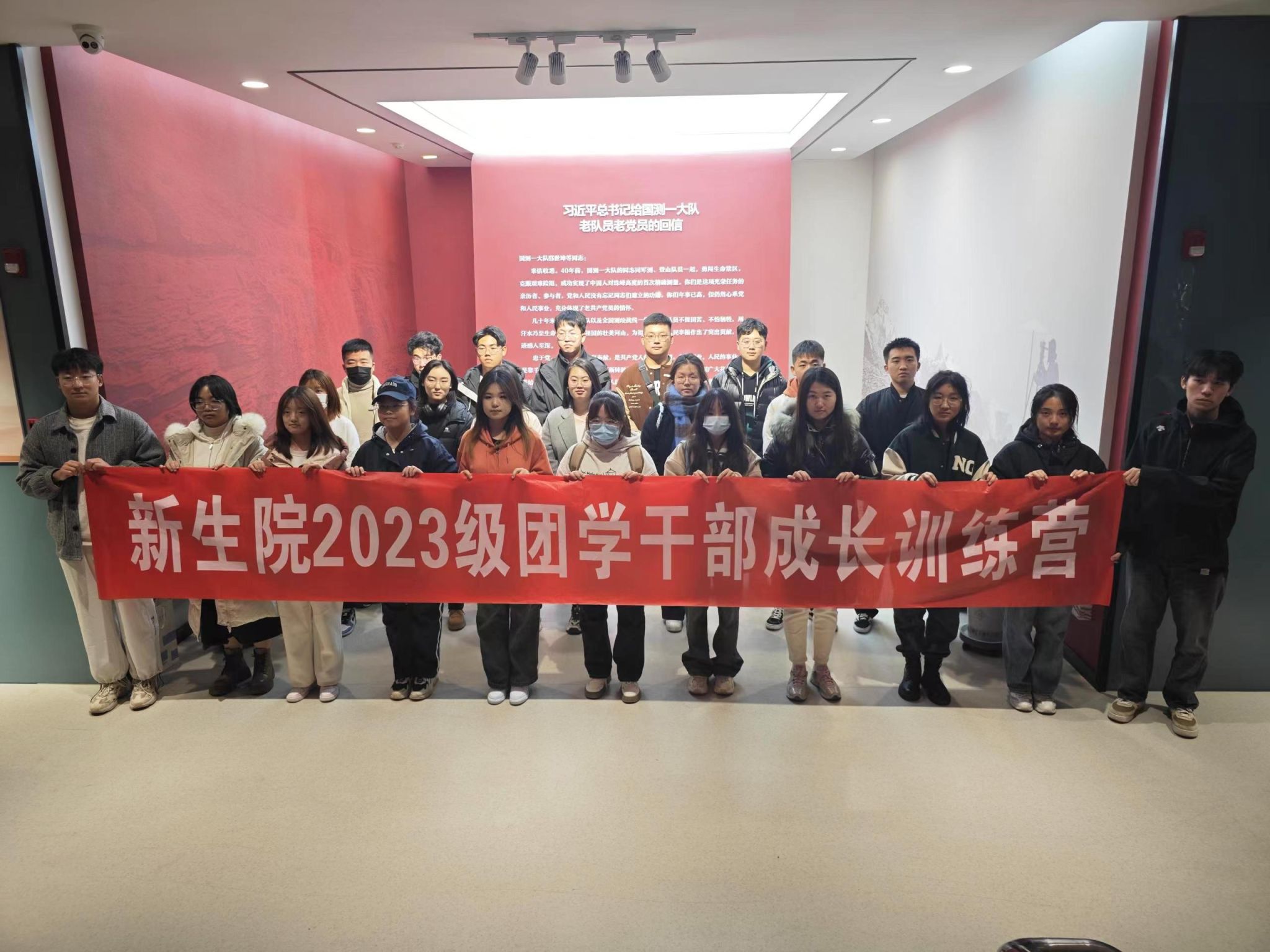 师生通过实地参观国测一大队精神展室,重温了习近平总书记给国测一大队老队员、老党员的回信精神,认真聆听了珠峰测量背后的故事,观看了不同时期的测绘老照片与测绘仪器设备,特别是珠峰高程测量的沙盘模型和测绘集体的荣誉奖项,使大家深深感受到了榜样的力量。