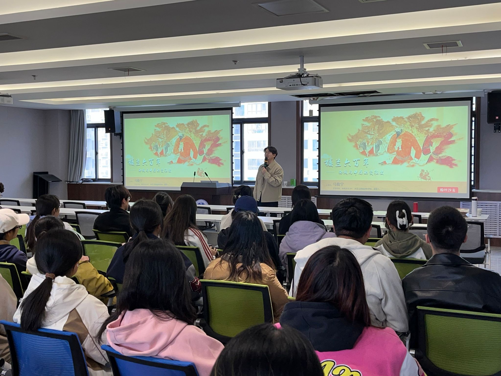 的小李同学表示:“这次讲座让我对西域历史产生了浓厚的兴趣,没想到小小的楼兰古国背后,竟隐藏着如此波澜壮阔的历史。”讲座结束后同学们纷纷邀请马老师签名、合影。