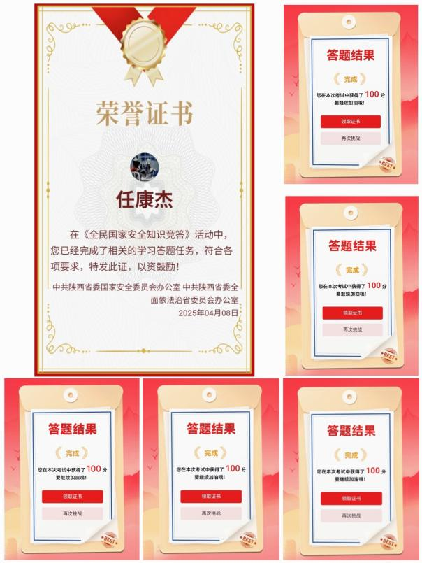 同时,依托法制陕西平台在全院范围内认真开展国家安全教育知识竞赛活动,学生们积极踊跃参与,4300余人参与知识竞答。