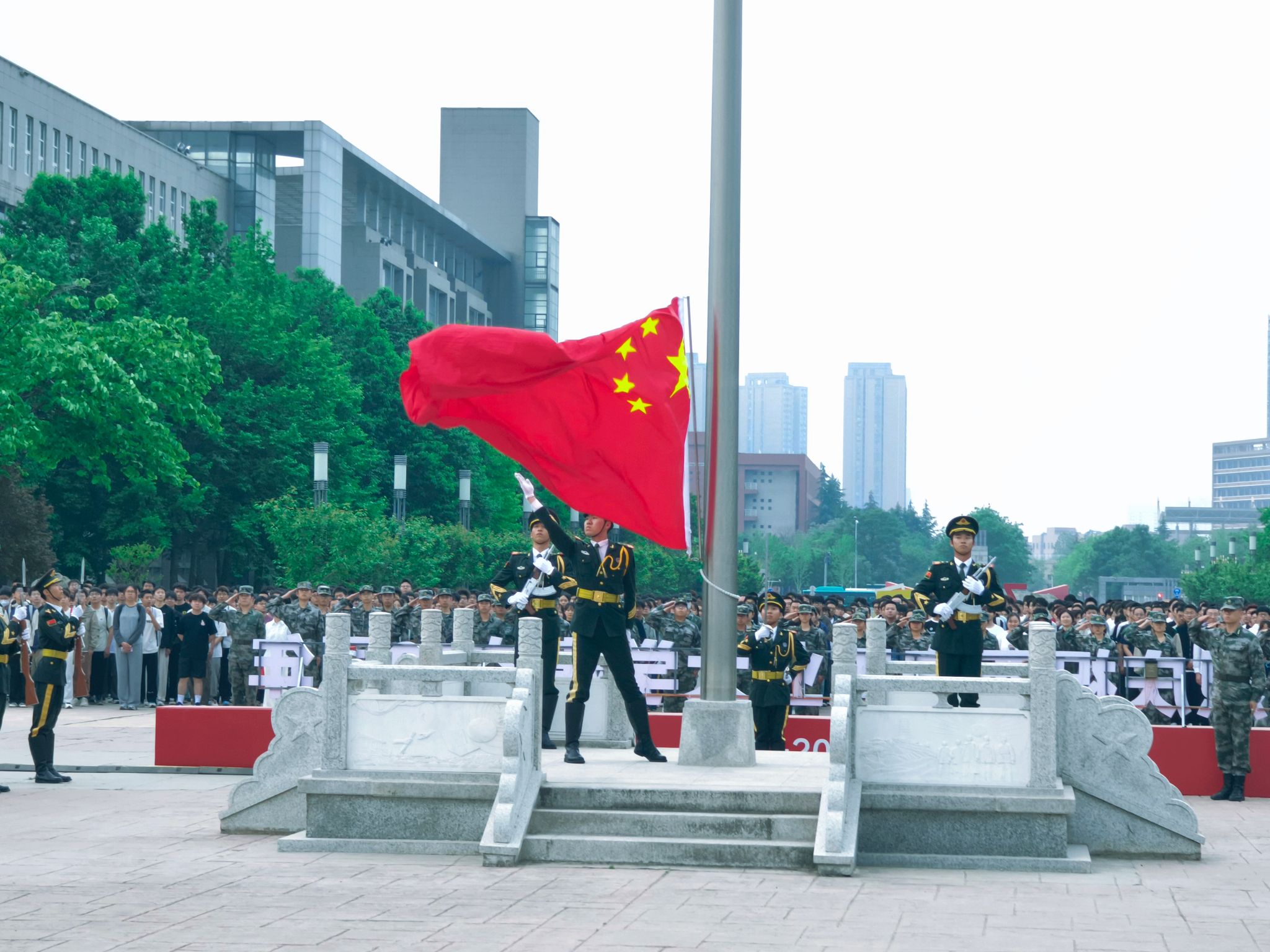 七秩薪火绽荣光 家国共进启新程——壹号娱乐 举行校庆日升旗仪式