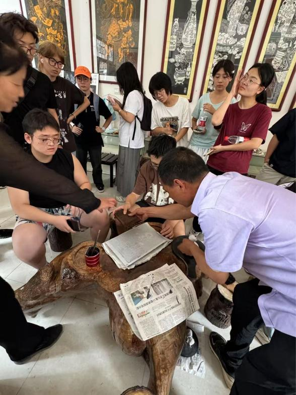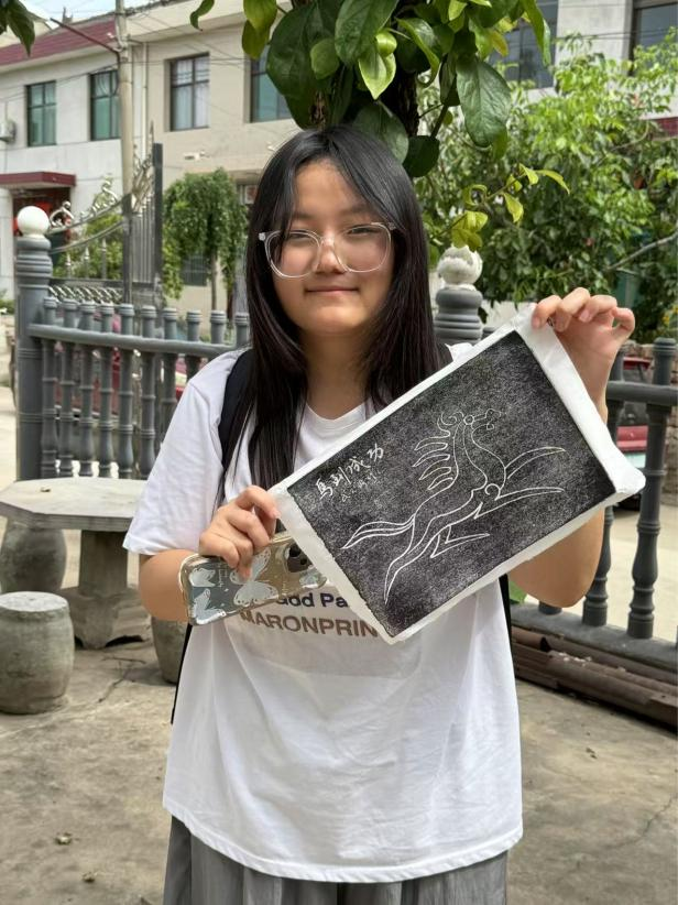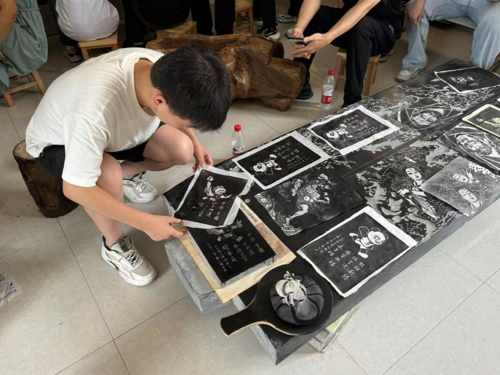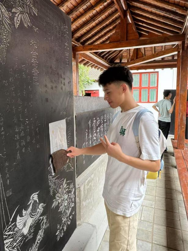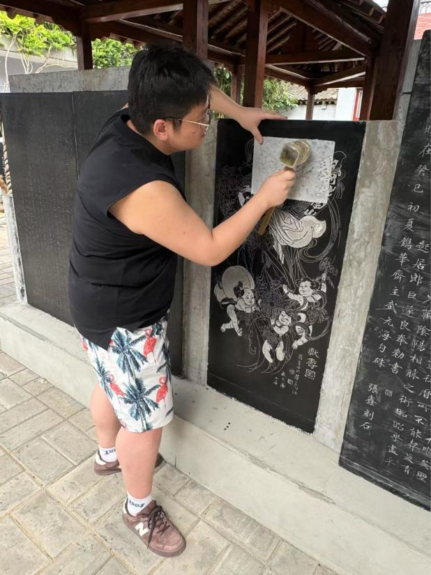 活动现场氛围热烈,同学们相互交流经验,分享自己的创作心得。除了传统的文字拓片,有的同学还尝试对具有中国传统文化特色的人物、故事的石雕图案进行拓印。经过两个多小时的努力,一幅幅风格各异的拓片作品新鲜出炉,每一幅都凝聚着同学们对非遗文化的热情与探索。