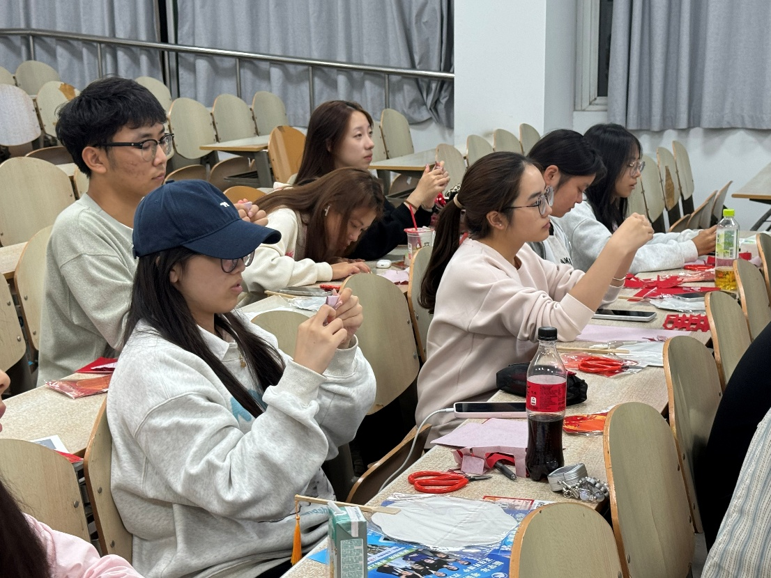 很多同学虽然都是第一次接触剪纸,但现场氛围融洽热烈,学生用心揣摩老师们的示范,积极交流技法和创意,耐心、认真地完成每一幅作品,原本普普通通的红纸,在大家的精心勾勒与裁剪下,逐渐变成一幅幅形态各异的作品。