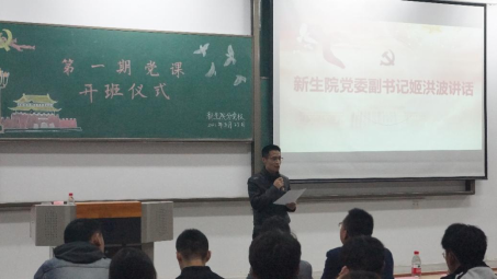 党委副书记姬洪波代表学院党委表达了对学员们的殷切期待,希望学员们珍惜和重视党校学习机会,在本次党课中能够严格要求自己,思想进步,勤奋学习,做一名德、智、体、美、劳全面发展的新时代青年。同时,以自己的一言一行带动身边的同学,为自身今后的发展打下坚实的基础。