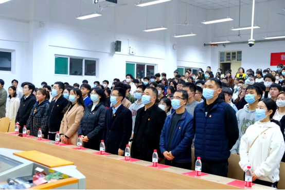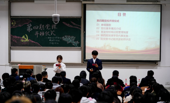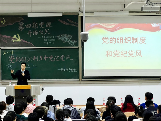 在教1-205举行第四期入党积极分子培训班开班式暨党课第一讲,308名学员参加,开班式以线上线下相结合的方式进行。
