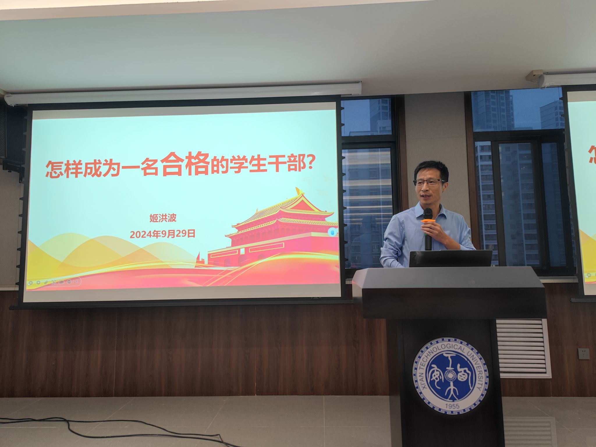 姬洪波以“怎样成为一名合格的学生干部”为题讲述。他以“如何做好学生干部之三问”,系统阐述了学生干部的角色定位和要求,对工作认识偏差、学习和工作的关系、能力素质培养等方面进行阐述。他强调,学生干部的核心任务是服务同学、提高自己、奉献学校,要充分发挥桥梁纽带作用;要明个人规划和目标,做好学习和工作的协调;要以端正的态度对待工作,不断学习和积累,全面提升个人综合素质,做一名合格的学生干部。