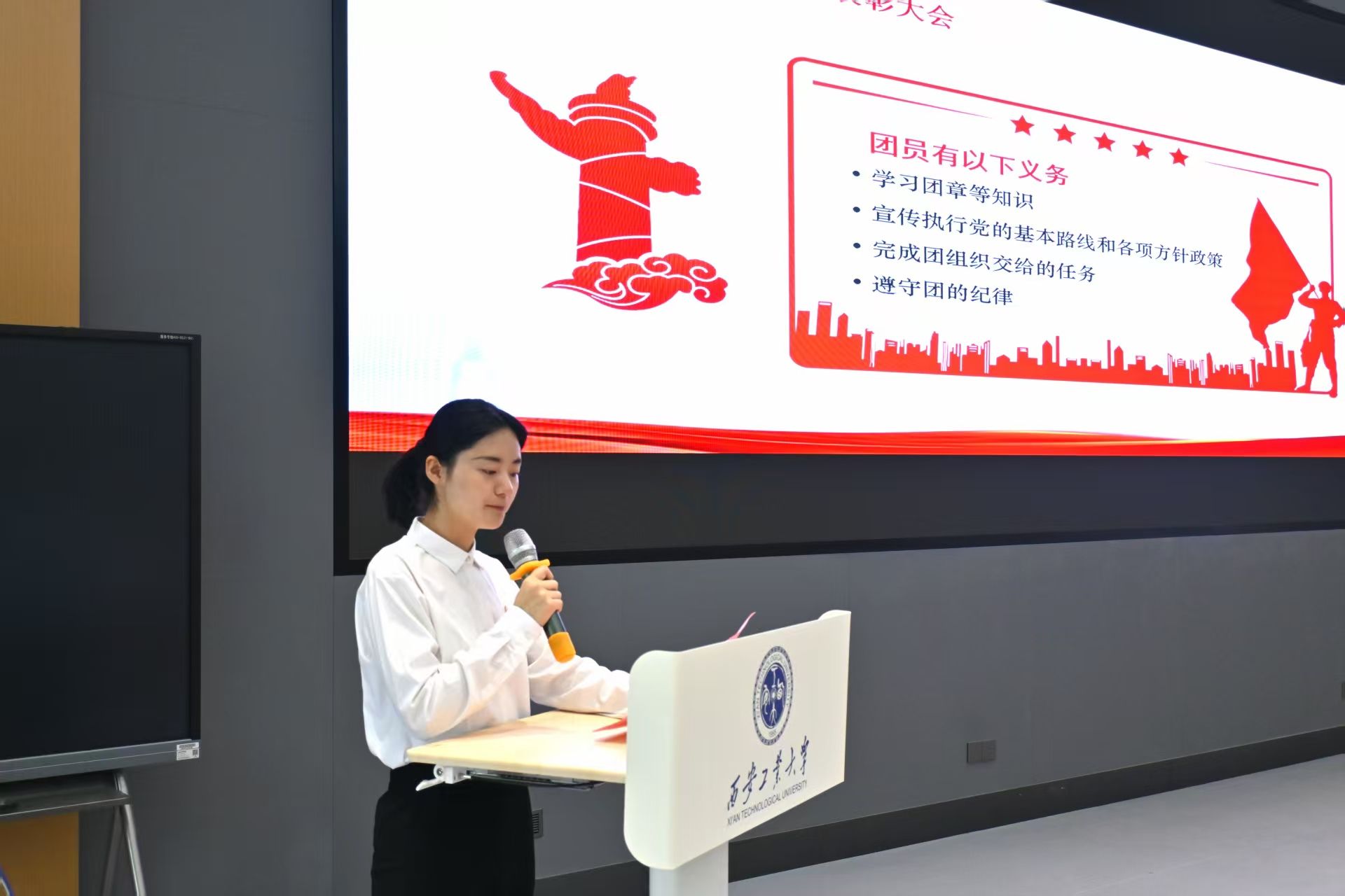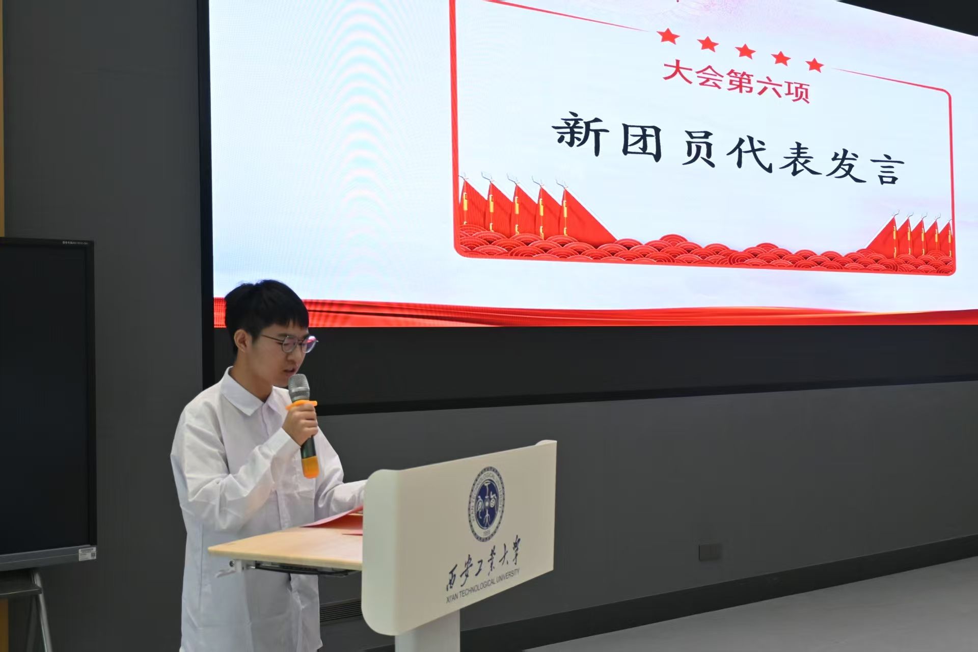 最后,翟超总结讲话。他首先向新团员和获奖同学表示热烈祝贺,同时对全体同学提出殷切期望。勉励大家在团组织的培养下高举团旗跟党走,坚定理想信念,以优秀榜样为标杆,奋发努力、勇于担当,积极向党组织靠拢,让青春在奋斗中绽放绚丽之花。