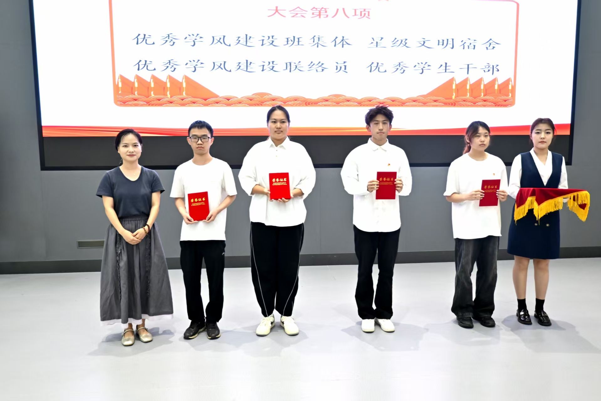 院学工办主任王娟宣读《关于表彰2024年度共青团先进集体和优秀个人的决定》《关于表彰2024-2025学年学风建设先进集体和先进个人的决定》。