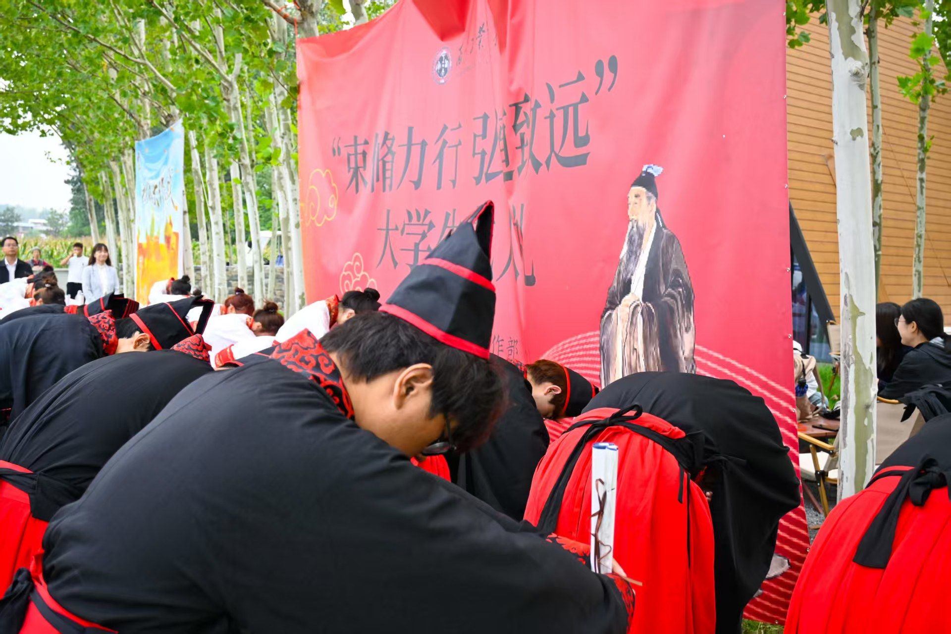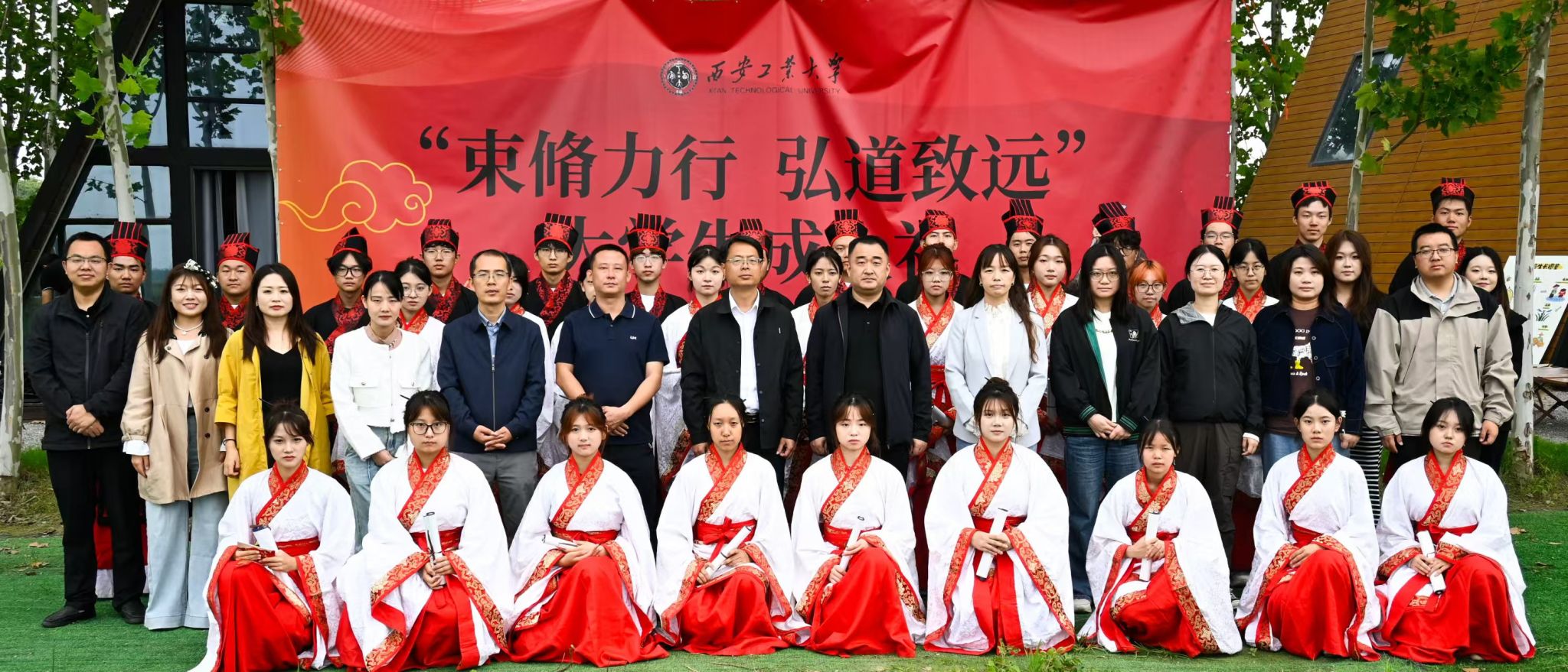 承办的“束脩力行 弘道致远”大学生成人礼仪式在西安市鄠邑区曲水稻香劳动教育基地举办。壹号娱乐年满十八周岁的2025级学生代表参加仪式。壹号娱乐