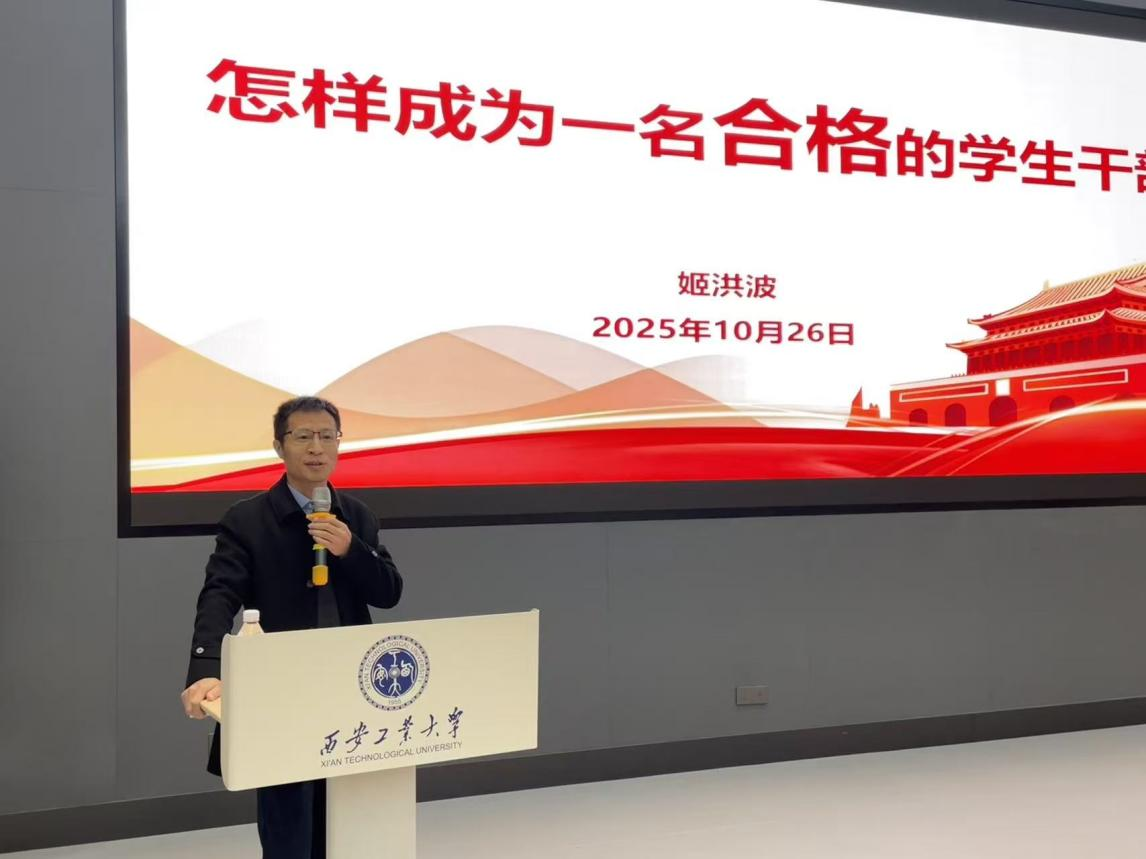 姬洪波以《如何成为一名合格的学生干部》为题授课。首先从打造高素质学生干部队伍的角度出发,阐释高校立德树人的根本任务,强调人才培养是核心使命,并指出在社会对人才要求不断提高的背景下,学生干部更应勇担责任、积极作为。他重点解析了学生干部的角色定位,明确提出“学生为本,干部为辅”的双重身份内涵;系统阐述了学生干部应强化的“四种意识”、需具备的“六种能力”以及要处理好的“五种关系”,并结合实际工作中常见的误区,给出具体可行的建议与方法。整场讲授既有理论高度,又贴近工作实际,为学生干部提供了一份扎实的成长指南。