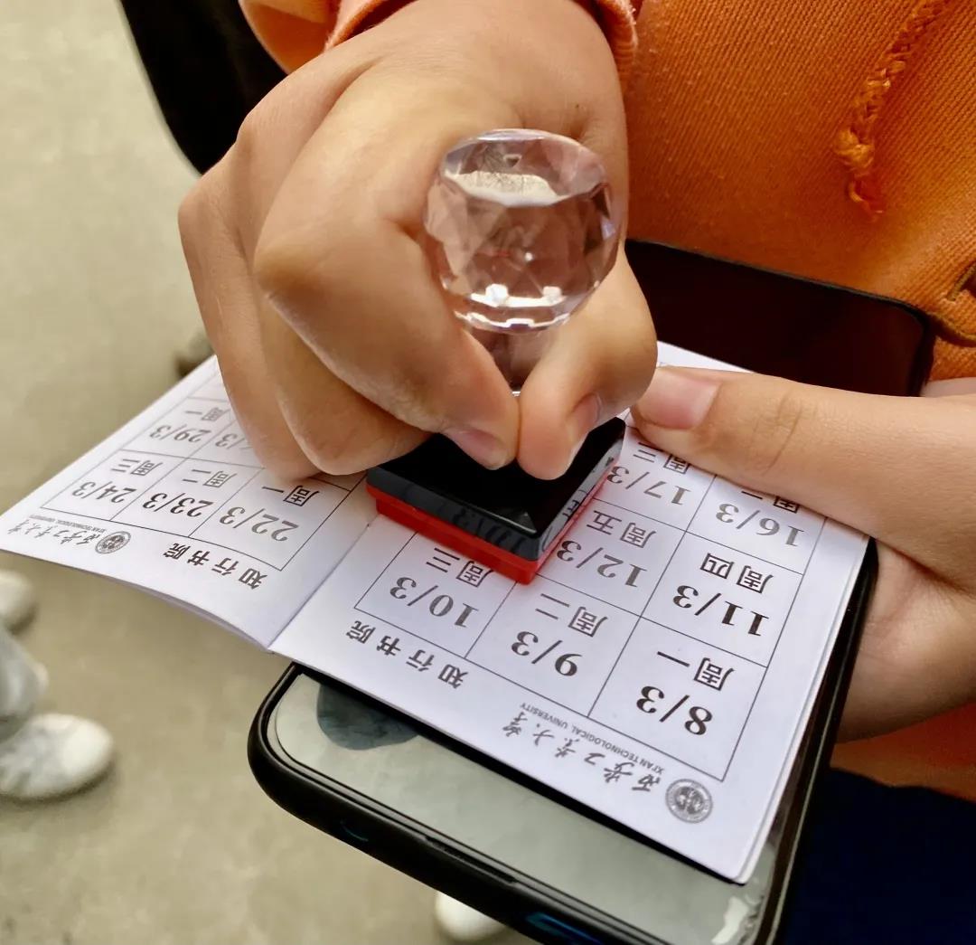 晨光熹微,清风习习,新的一天拉开帷幕。学生干部早早穿戴整齐,拿起印章,在公寓楼下等候同学们的早起打卡。