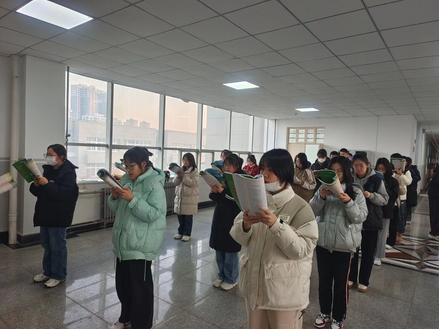 早自习版块累计开展3期,共计1200人次。学生在固定教室预习课程章节、复习数学习题、诵读课外读物,不断提升学习方法,增长智慧。FIF打卡版块累计开展2期,共计600人次。学生利用“FiF 口语训练-学生版”APP朗读新视野课本相关内容,练习英文口语,巩固课堂知识,学习语法技巧,提高英语成绩。室外晨读版块开展1期,共计100人。4名领诵员以1:25的比例带领同学们朗读英文课本、背诵单词、交流口语,提升英语水平。